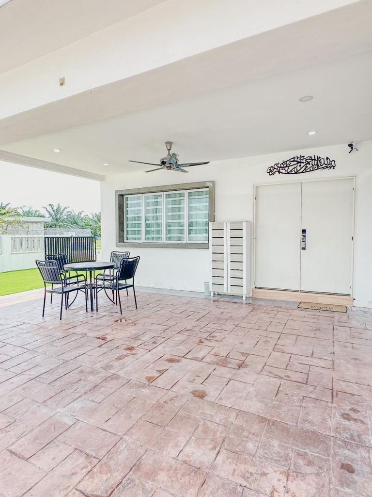 Una villa única de estilo fortaleza en Sri Tiram Jaya, Tanjung Karang, cerca de Kuala Selangor, Malasia. A solo 18 km de Sky Mirror y a 16 km del Parque Nacional de Kuala Selangor, ofrece tres dormitorios FF, una cocina totalmente equipada, un salón de eventos y una terraza en la azotea. Rodeado de granjas y pintorescos campos de arroz, es perfecto para paseos por la naturaleza y ciclismo. Convenientemente ubicado a 70 millas de KLIA y a 40 millas del aeropuerto de Subang, es un refugio ideal para familias, parejas o eventos para una estancia inolvidable.