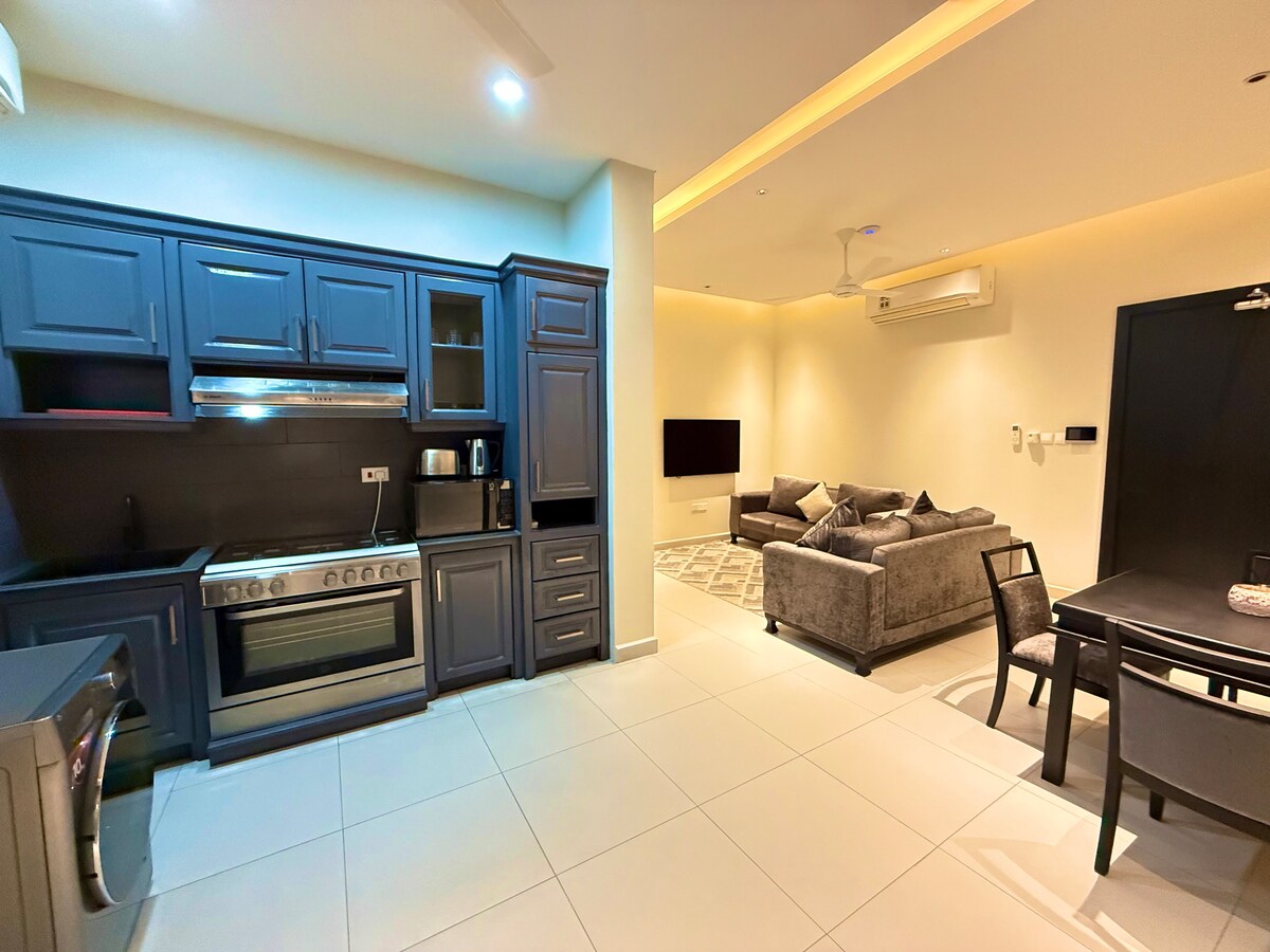 Este es un apartamento de 1 dormitorio con un diseño de concepto de cocina abierta y sala de estar separada que ofrece la privacidad que tanto se necesita, especialmente para las parejas. El establecimiento se encuentra en una zona segura al alcance de muchos lugares esenciales de Dar, como Mlimani City, el centro de la ciudad y Masaki. La unidad está bien amueblado con comodidades modernas que incluyen lavadora, wifi fiable, TV por cable de 55 pulgadas, aire acondicionado y mucho más. Hay un aparcamiento seguro gratuito, así como un bonito paisaje de jardín en el exterior para relajarse.