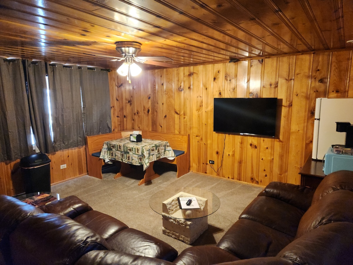 Esta habitación tiene un dormitorio con una cama tamaño king y un sofá cama tamaño queen, una cocina y comedor separados, y un televisor de pantalla plana de 32 pulgadas. Esta habitación está en el primer piso. Alpine Lodge ya no permite remolques en la propiedad, lo que incluye cargar y descargar remolques. Cualquier huésped que viaje con remolques debe utilizar las áreas de aparcamiento público de Red River para aparcar, cargar y descargar vehículos de remolques.