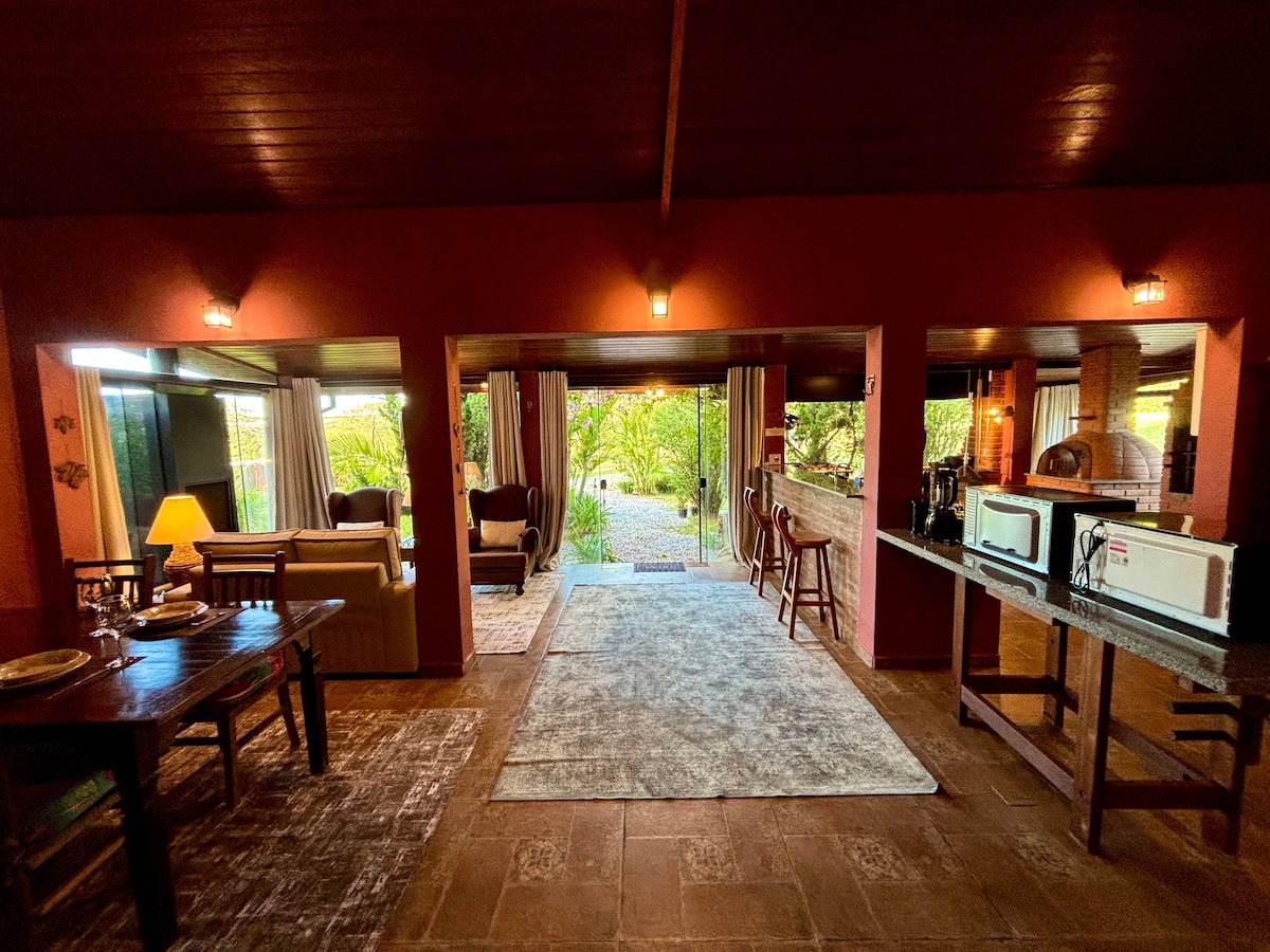 Casa rústica e aconchegante em meio à Mata Atlântica. Ideal para descansar, ouvir o canto dos pássaros e aproveitar a tranquilidade da natureza, com espaço simples e autêntico para momentos de paz e conexão. Casa para relaxar e fugir da correria do dia a dia. Em meio a mata atlântica, com cachoeiras, represas, monjolo e muitos passeios. Refeições mediante a reserva, com comidas típicas. Almoço, janta, café da manhã e da tarde.