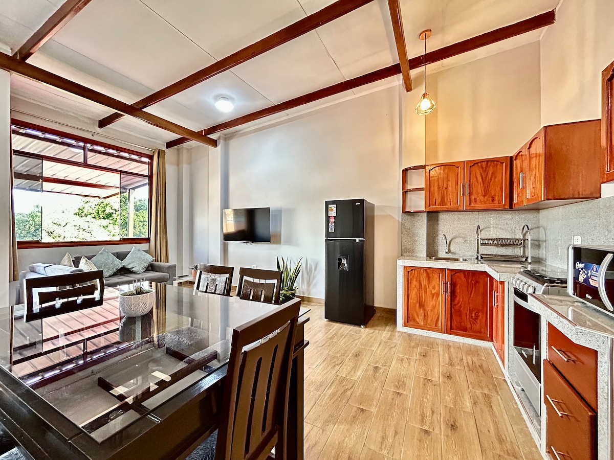 Departamento privado y exclusivo para el huésped en 2do. piso, ingreso autónomo, acogedora sala con sofá cama y Smart TV de pantalla plana; mesa con cuatro sillas; cocina moderna, aire acondicionado, dos dormitorios con cómoda cama 2 plazas, espacio para trabajo dedicado, dos baños, agua caliente, terraza interior y otra con parrilla, lavandería con lava/seca. ¡Internet, estacionamiento gratis, a 10 min del aeropuerto y 6 minutos de la plaza de armas. Tendrán una experiencia inolvidable.