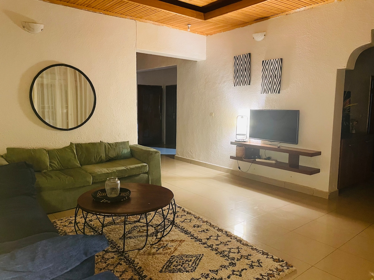 Disfruta de la sencillez de este alojamiento tranquilo y céntrico. No está lejos de la ciudad, donde puedes encontrar de todo, cerca del estadio Arena y del estadio Amahoro, pero en un barrio tranquilo. En el interior, encontrarás todas las comodidades de un hogar con un toque de lujo. Las habitaciones están diseñadas para noches de descanso y los baños satisfacen tus necesidades de cuidado. La sala de estar de concepto abierto es perfecta para reunirse, compartir comidas o simplemente relajarse mientras la luz dorada del atardecer llena la habitación.