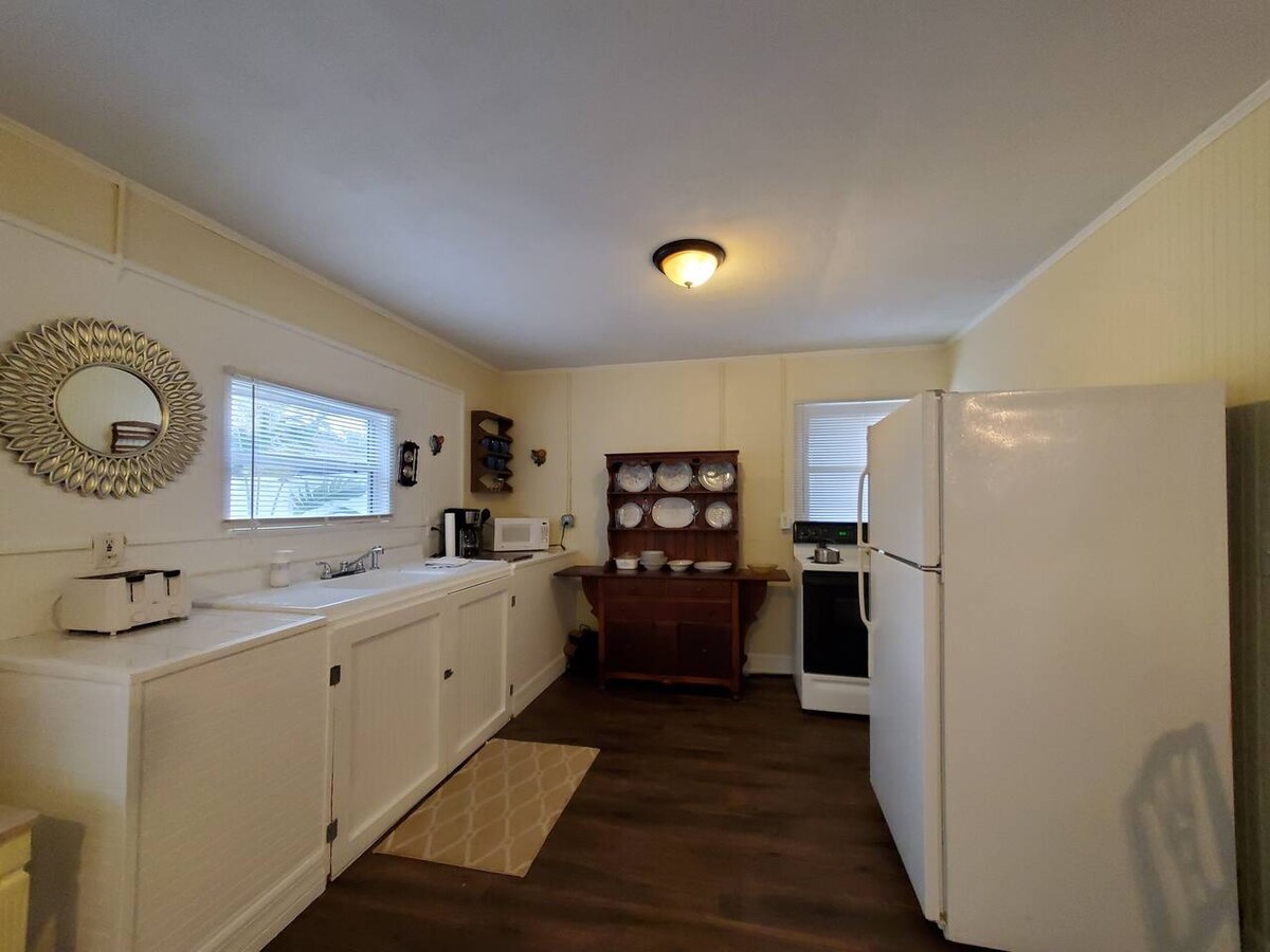 Situado en el corazón del centro histórico de Tarpon Springs, Palm Cottage (520 pies cuadrados) está a poca distancia de los mundialmente famosos MUELLES DE ESPONJA, y se encuentra a pocas cuadras de las cervecerías, restaurantes y el SENDERO PINELLAS. ¡Y la PLAYA está a solo 3 millas de distancia! La cabaña ofrece camas tamaño king y individuales, Wi-Fi, TV contra incendios, cocina con estufa y nevera completas, cafetera, tostadora, ollas, sartenes, mesa y uso compartido del patio trasero tropical de nuestra casa victoriana de 121 años. ¡Primera vez que los huéspedes de Airbnb son bienvenidos!