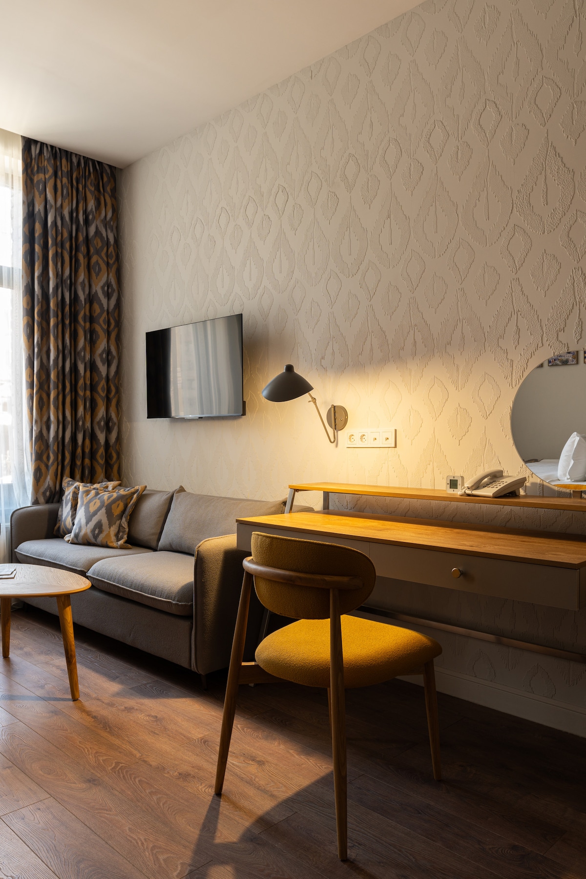 Стандартный двухместный номер с 1 кроватью. Двухместный номер с 1 кроватью, кондиционером, телевизором с плоским экраном и потоковыми сервисами, звуконепроницаемыми стенами, принадлежностями для чая/кофе, гостиным уголком, а также видом на город. В номере одна большая кровать.