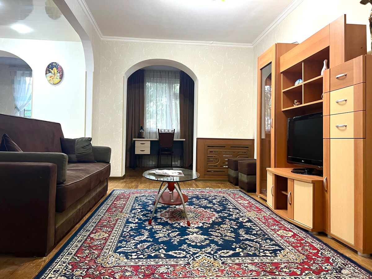 Amplio apartamento en el mismo centro de Tashkent. Hermosas vistas. Hay muchos restaurantes y cafeterías alrededor. Equipado con todo lo necesario para que tu estancia sea inolvidable. Está cerca de los famosos lugares turísticos y atracciones de la ciudad.
