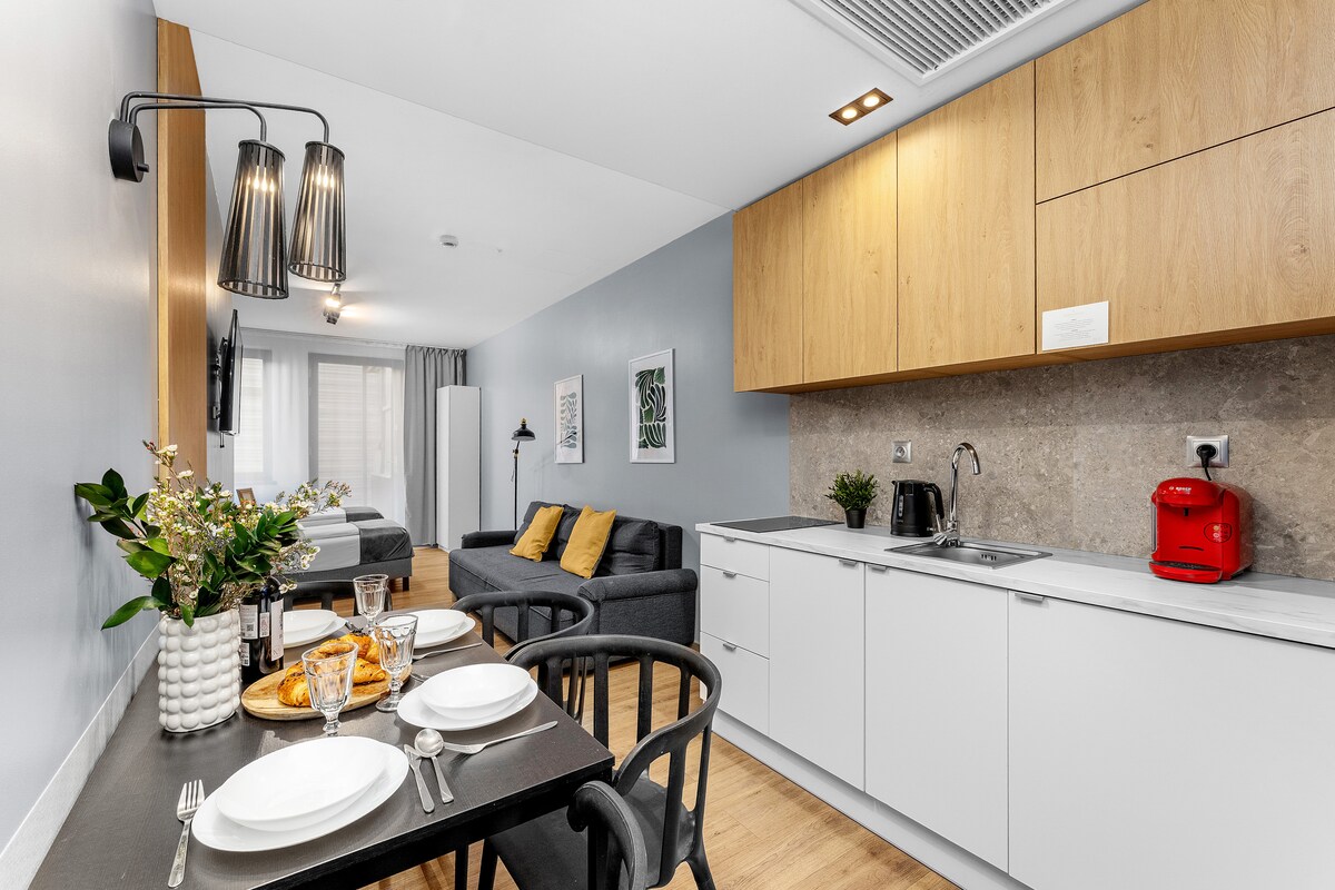 Entra en la comodidad en Nola 1-an elegante apartamento de un dormitorio a pocos minutos de la plaza principal de Cracovia. Este espacio cuidadosamente diseñado cuenta con una cocina totalmente equipada, aire acondicionado, wifi rápido y toques elegantes en todas partes. Disfruta del café por la mañana en la mesa del comedor o relájate con una copa de vino después de explorar Wawel o Planty Park. Perfecto para parejas o viajeros solitarios que buscan comodidad y tranquilidad en el corazón de la ciudad.