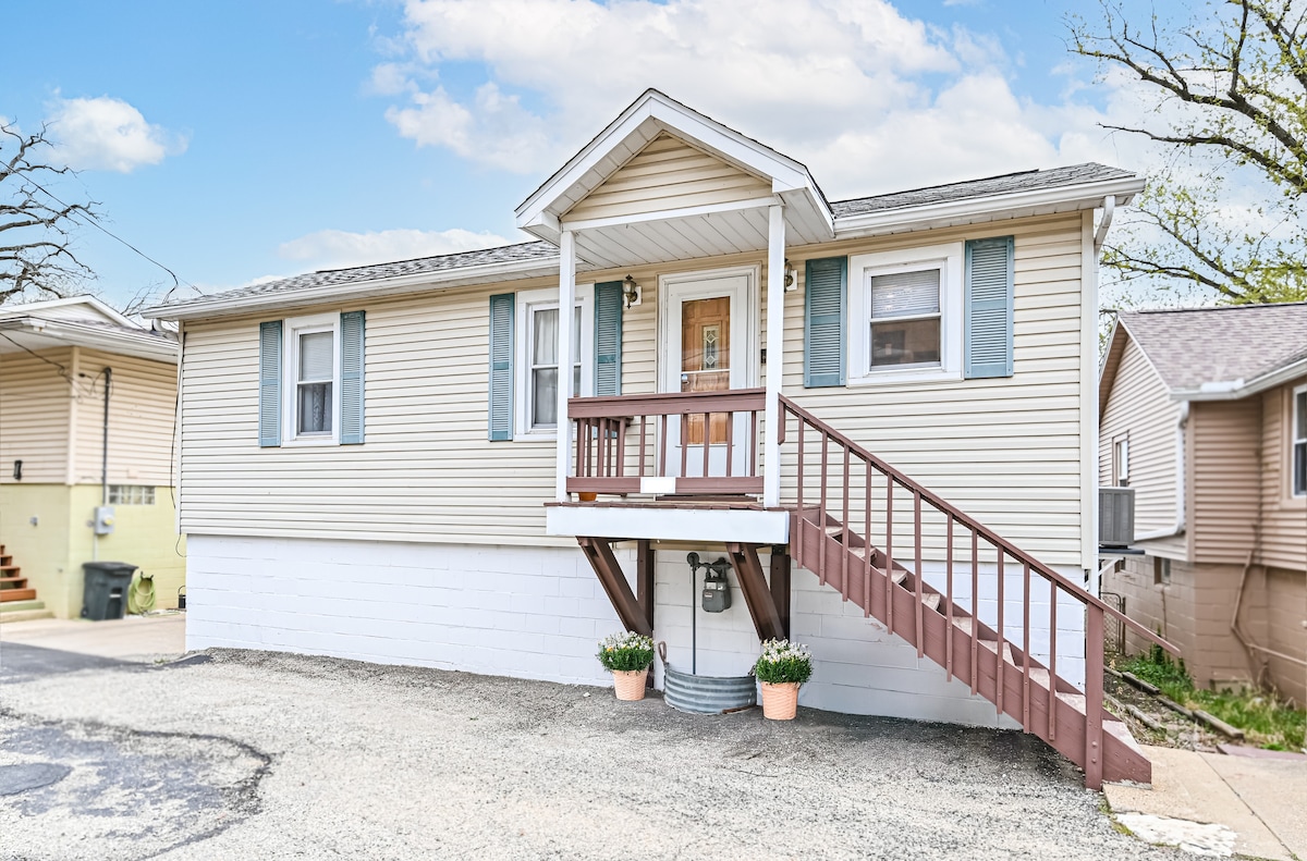 Relájate en esta acogedora cabaña situada frente al River Trail y justo al lado de la I-74. Disfruta del balcón envolvente, la privacidad y la tranquilidad de este hermoso lugar. Los niños pueden quedarse en el loft con un rincón de lectura y TV inteligente. Dormitorio principal privado con lámparas táctiles. Excelente ubicación, cerca de todo. Gran lote lateral con mucho espacio para actividades al aire libre, incluido un fogón. Cuartos anexos en el nivel inferior con cocina pequeña, baño y cama tamaño queen bajo petición.