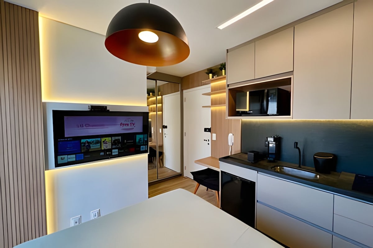 Equipado e com cheirinho de novo. O apê é num prédio recém construído, e tem garden, telhado estiloso, 2 TVs 42” e sofá confortável. De Miojo a risoto, dá pra fazer tudo, com cooktop, air fryer, microondas. Home office? Tem Vivo Fibra e máquina DGusto. Quer curtir? Netflix, Max,Prime e Google Home. Ainda tem academia e piscina no rooftop. Precisa sair? Paulista a 5 min, com pontos de metrô perto. Vai voltar? A portaria é 24h, a fechadura com senha. E o melhor: a internet funciona no banheiro.