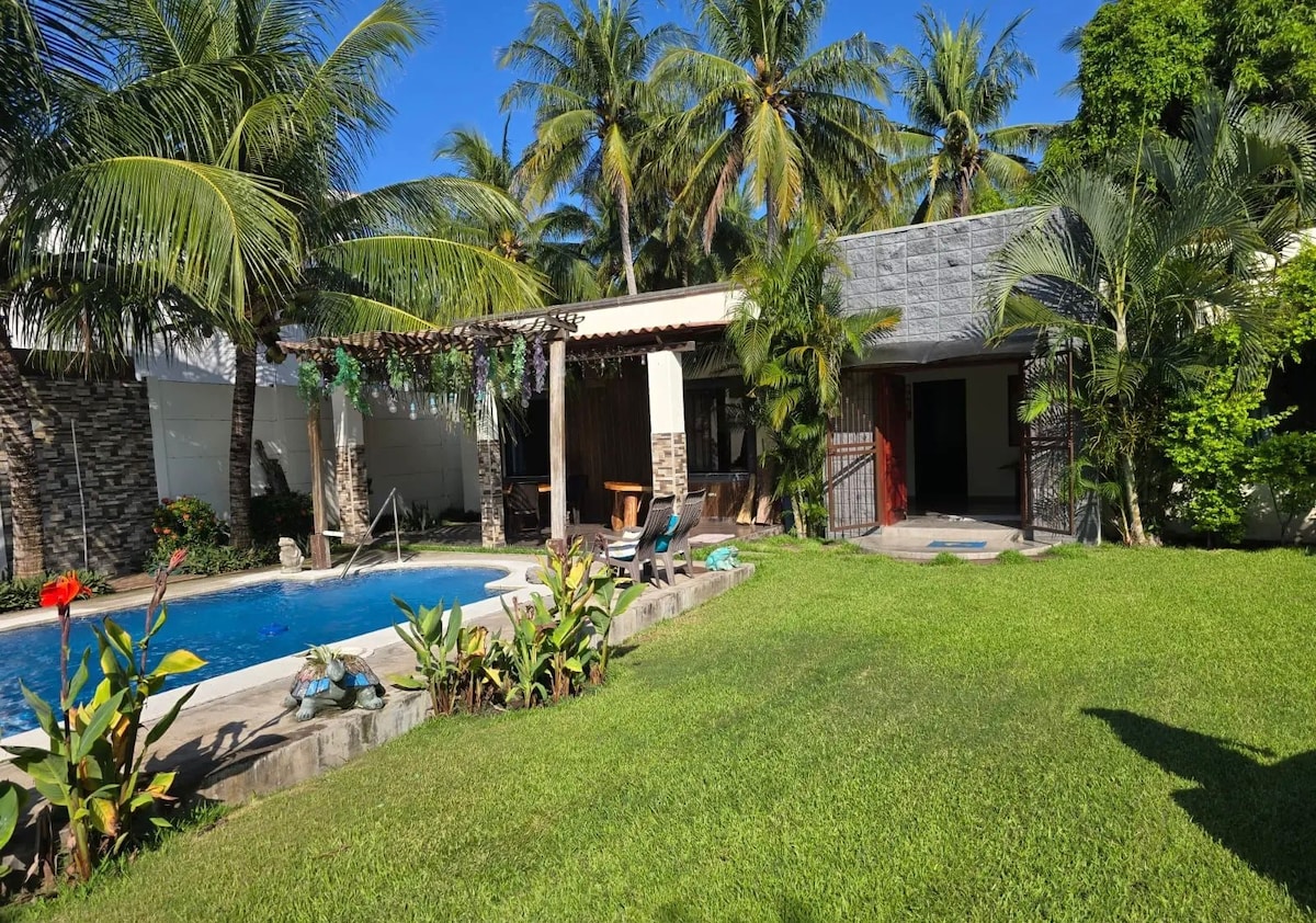 Un lugar en medio de la naturaleza para gozar en grande con una amplia piscina para celebrar. Tiene área para cocinar adentro de la casa y otra al aire libre, cuenta con un baño amplio principal moderno adentro de la casa. El espacio es para 6 hasta 10 personas. al llegar a la propiedad el encargado está disponible para ayudar, el y su familia duermen en una casa completamente separada de la casa principal respetando la privacidad de los ocupantes. Starlink Wifi is on the property