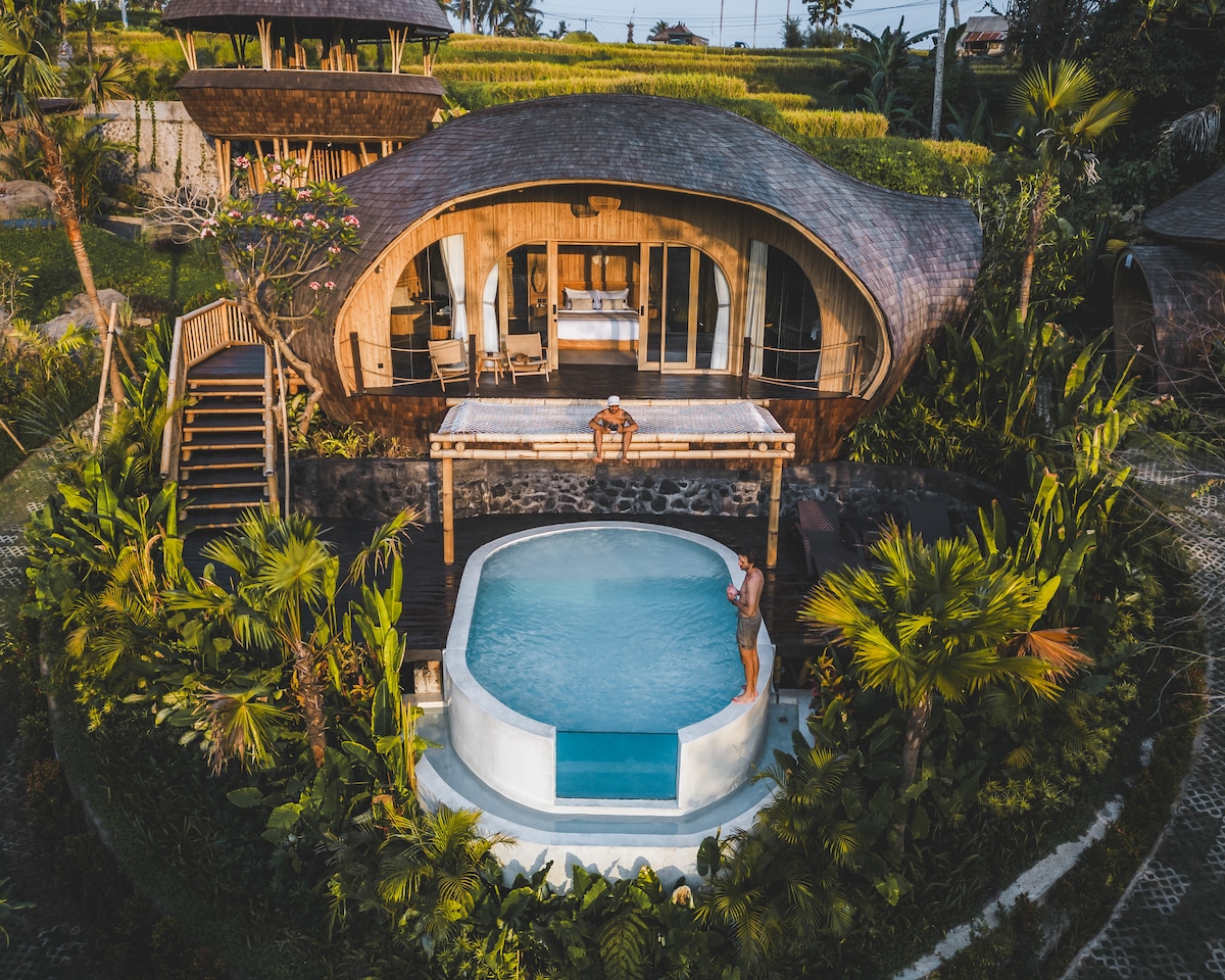 Escondida entre arrozales y selva tropical, Oniria es una villa de lujo romántica diseñada para parejas que buscan belleza, conexión y calma. Disfruta de una piscina infinita privada climatizada con vistas a los arrozales, una bañera bajo las estrellas y un cine privado que convierte cada noche en una escena de película. Cada detalle une naturaleza, diseño y emoción, creando una de las estancias más únicas de Bali para lunamieleros y soñadores. Aquí el tiempo se ralentiza y la conexión comienza