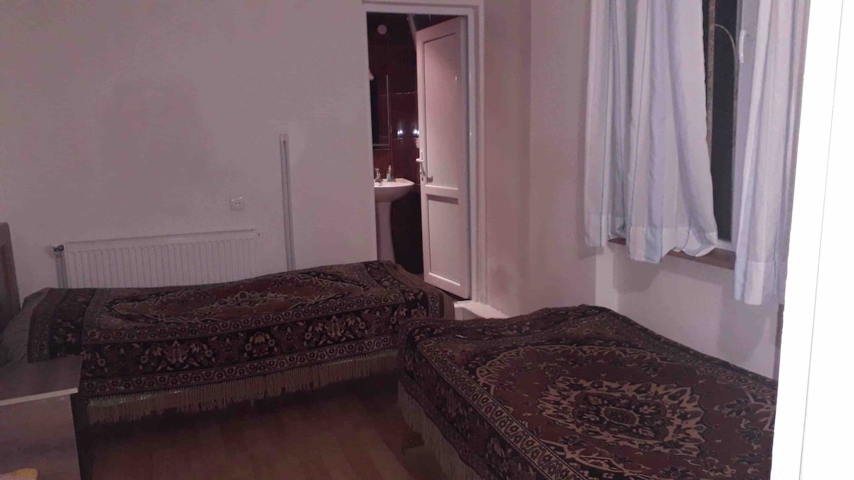 Esto es con 4 camas individuales. Tiene cocina y baño. Es ideal para un grupo familiar o de amigos. También puede acomodar a 15 personas, si tienen sacos de dormir. La superficie es de 1600 metros cuadrados, con nogales y ciruelos. A sólo 50 metros de la carretera principal y supermercado. 7-8 minutos en coche del restaurante. Maravilloso entorno, con bosque de hayas vírgenes y manantiales, con agradables rutas de senderismo. Maravillosa naturaleza y vistas a su alrededor. temperatura 10C grados más baja, luego en Telavi y Tbilisi.
