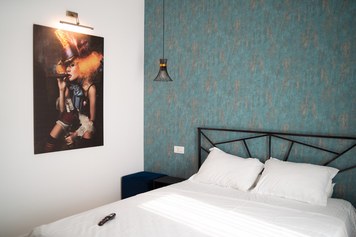 Casa de campo moderna y acogedora, ideal para relajarse en un entorno natural. Incluye cama tamaño king, baño privado, TV inteligente y patio. Los huéspedes se benefician de acceso completo a las instalaciones del resort «Somewhere to the Country»: salas de fitness, circuito al aire libre, cenadores, bar, cocina, Relax Corner, chimenea y camas elásticas. Un refugio completo a solo 50 km de Bucarest.