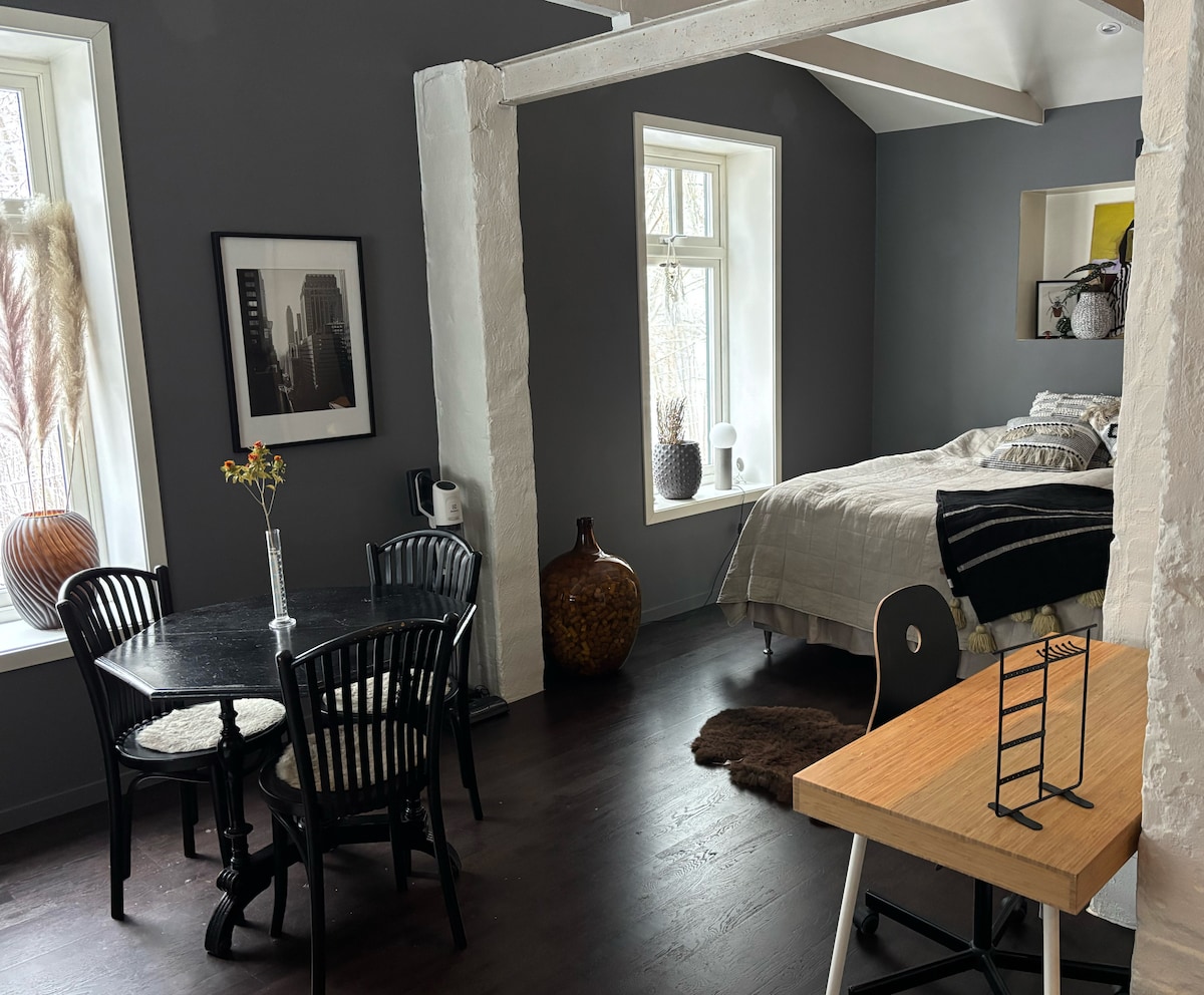 Relájate en este alojamiento único y tranquilo rodeado de pastos, antiguas paredes de piedra y paisaje de roble a solo 5 km de Växjö Centrum. Aquí puedes disfrutar de largos paseos por un hermoso entorno cerca de la Reserva Natural Teleborg y el castillo de Teleborg. La casa es luminosa y espaciosa, con 4 camas que consisten en un dormitorio con cama de 90 cm, altillo para dormir con cama doble divisible y sofá cama doble en el salón. Existe la posibilidad de un colchón adicional en el loft para dormir para varios huéspedes. Baño y cocina privados.