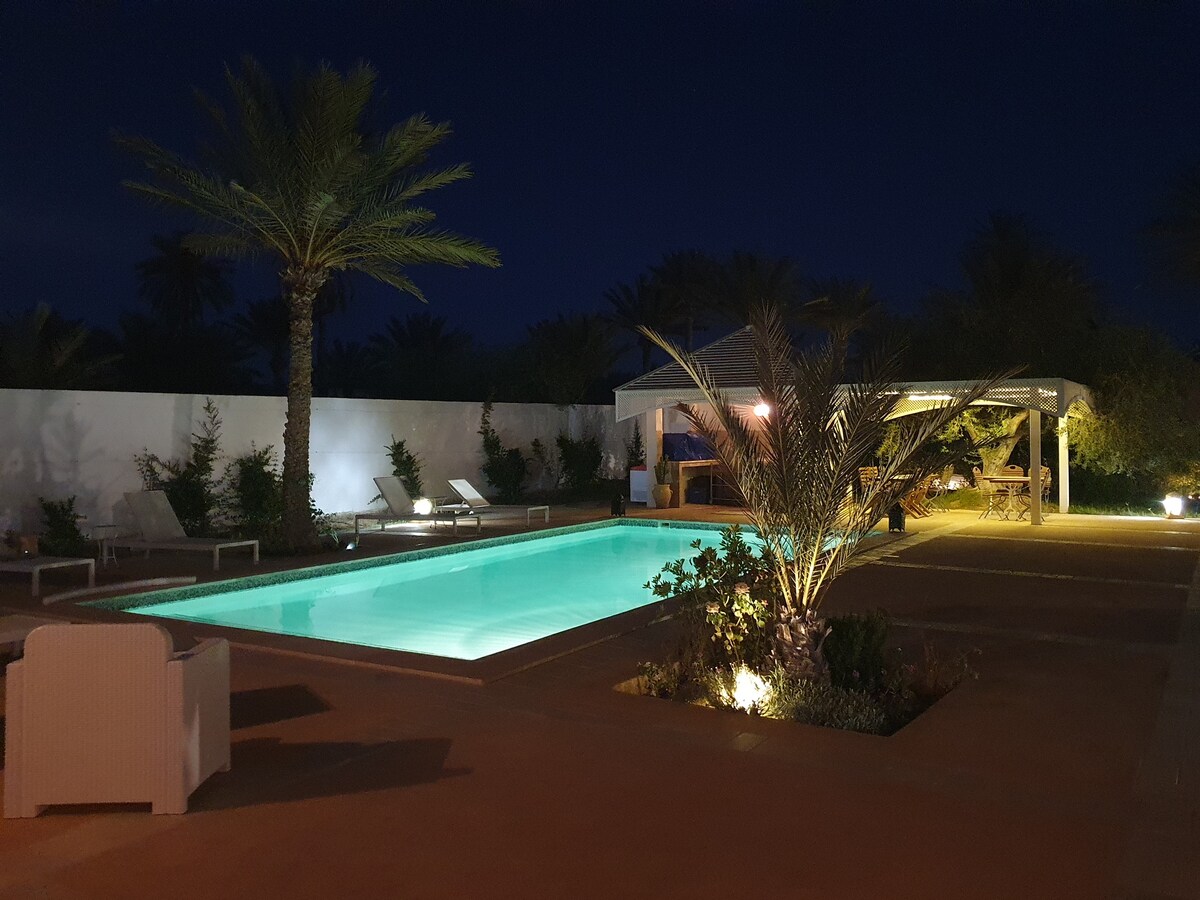 Bienvenue dans notre villa sans vis-à-vis exposée plein sud, dans un endroit calme Elle dispose d'une grande piscine privée, d'une pataugeoire, d'un grand séjour, d'une cuisine équipée, d'un coin pergola pour des moments de détente, d'un barbecue, d'un coin cosy... Des jeux de société sont disponibles pour vous divertir À 200 m de la mosquée, et en voiture : à 2 min de la supérette, à 5 min de la plage et à 15 min du centre-ville de Midoun et de Bourgo Mall La voiture est fortement conseillée
