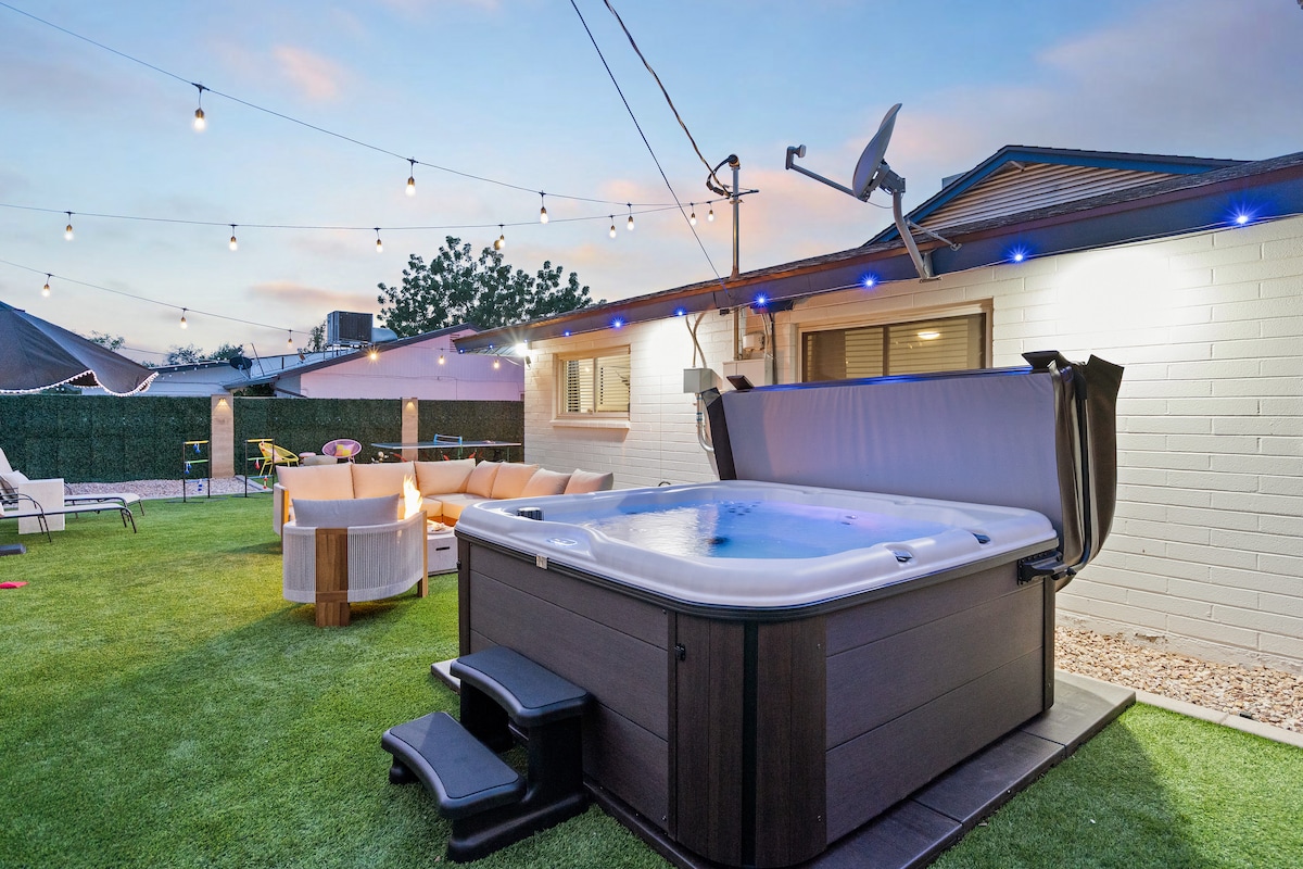Descubre el pináculo de la vida de lujo de Tempe en este exquisito paraíso de 3 dormitorios, 2 baños y 1660 pies cuadrados. Recientemente remodelado, cuenta con interiores elegantes con mesa de billar, televisores inteligentes de 58 pulgadas y una cocina moderna con electrodomésticos de acero inoxidable. En el exterior, disfruta de la piscina de agua salada autolimpiante, el jacuzzi y un televisor inteligente de movimiento completo en el patio. Con su cómoda ubicación, a solo 10 minutos en coche del aeropuerto, explorar las atracciones de Tempe y Scottsdale es fácil desde este refugio céntrico.