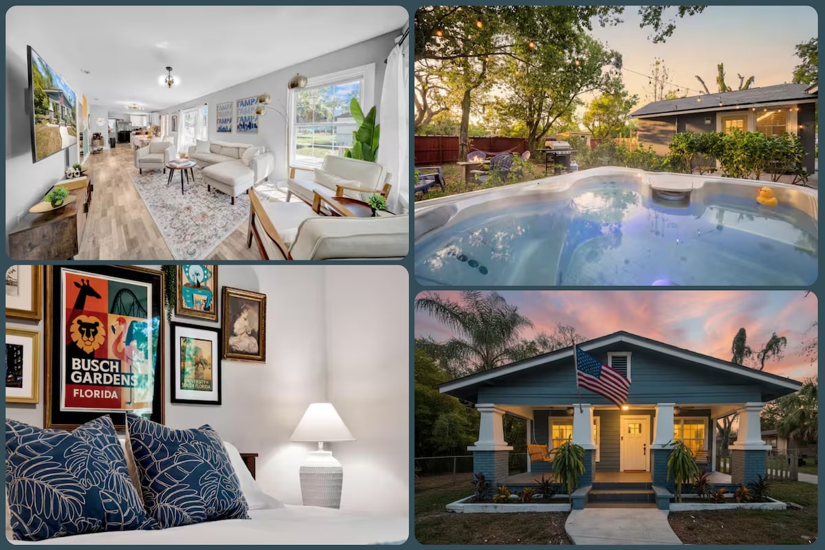 Home by USF/Busch Gardens Hot Tub, Fire Pit, Games