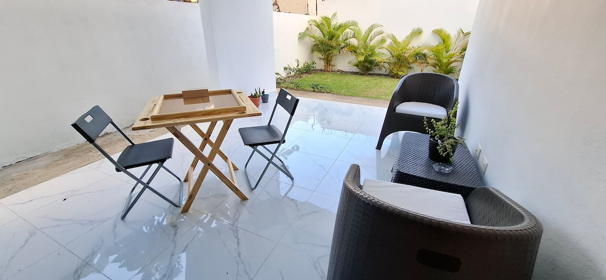 Disfruta de la sencillez de este alojamiento tranquilo y céntrico. Relájate con toda la familia en este tranquilo lugar para estadías prolongadas y cortas para vacaciones o negocios con todo lo que necesitas estacionamiento gratuito, wifi, tv, cocina completa con utensilios de cocina, plancha, lavadora, aire acondicionado en todas las habitaciones , parque de diversión con cancha de baloncesto. Cerca de banco, restaurantes y supermercados.