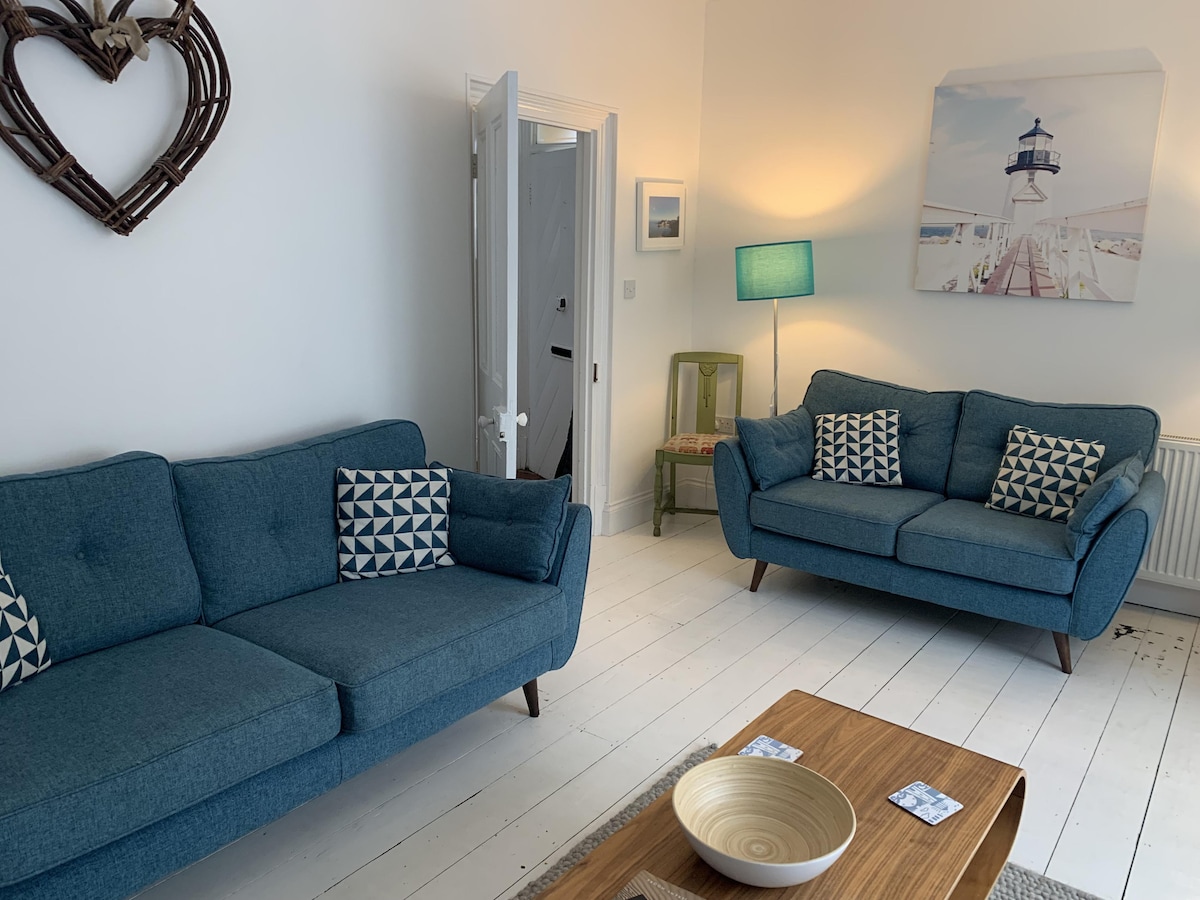 Cheriton View es un apartamento en el primer piso en una casa victoriana reconvertida, ubicado en una calle residencial a las afueras de las históricas murallas de la ciudad. La decoración tiene un tema junto al mar y se siente luminosa y espaciosa. Desde el salón y la ventana de la cocina tienes vistas distantes al mar y a la isla de Caldey. Siéntate en la ventana y observa cómo pasa el mundo. SMART TV con internet de alta velocidad 🛜 Las escaleras de la puerta principal te llevan a dos descansillos que dan una mayor sensación de amplitud y relajación
