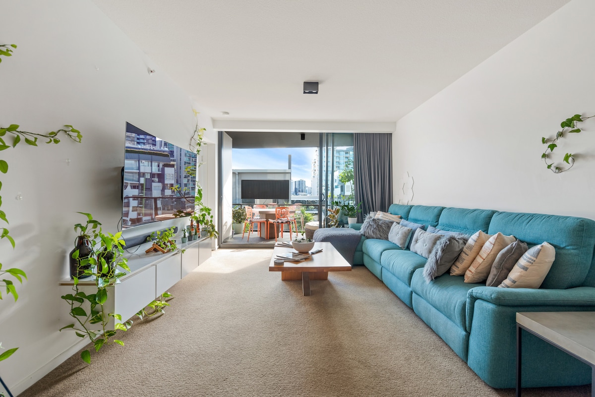Escape to our stylish 2-bed, 2.5-bath apartment in chic Newstead, Brisbane. Perfect for 4-5 guests, this quiet retreat offers stunning city views from a private balcony. Enjoy resort-style amenities including a pool, rooftop BBQ, and gym. With a full kitchen, dedicated workspace, and secure parking, it's the ideal base for exploring the city's best cafes, bars, and the vibrant Fortitude Valley, all just a short walk away.