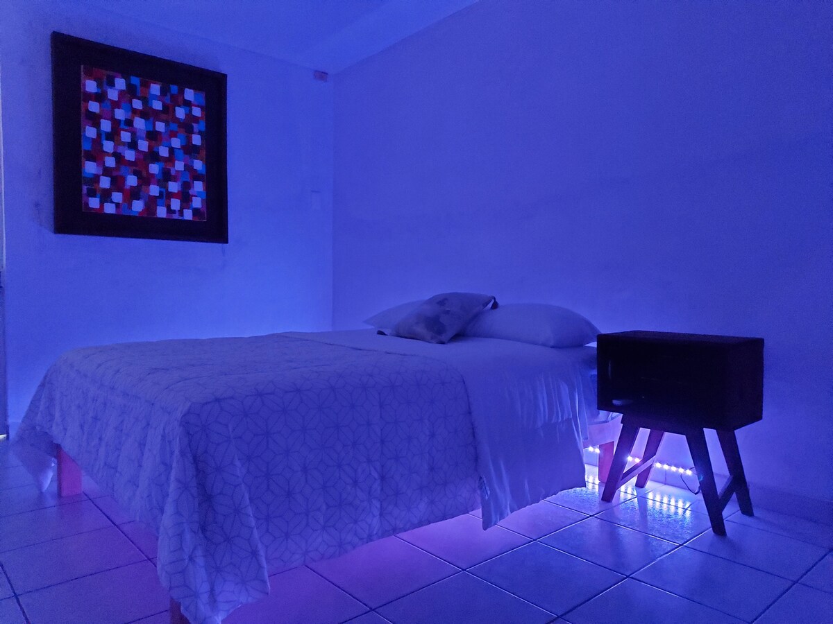 LOFT "A" Cómodo y equipado alojamiento chico tipo loft para una estancia agradable; CAMINANDO llegarás en 3 min. a la playa-malecón, a la vuelta esta el estadio de baseball de los venados, el central park, el nuevo acuario , enfrente esta la Gran Plaza y muy cerca está la zona dorada en donde encontrarás infinidad de restaurantes y antros para tu diversión. El lugar está en avenida hay mucho tránsito de vehículos y personas rumbo al malecón y playa. Perfecto para parejas y viajeros solitarios