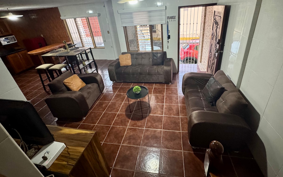 Hasta 7 huéspedes, con cargo adicional después de 4. Desconecta de tus preocupaciones en este espacio tan amplio y sereno. En zona tranquila, casa nueva, espaciosa, muy bien acondicionada. Cuenta con: - 1 cama matrimonial - 2 camas individuales - 2 sofá camas - cochera techada Cerca de parques, plaza forum, avenidas principales. Cerca de la vivienda encontrarán: tienda de abarrotes, cocina económica y lavandería. Y por la noche tacos. hamburguesas. alitas, sushi, etc.