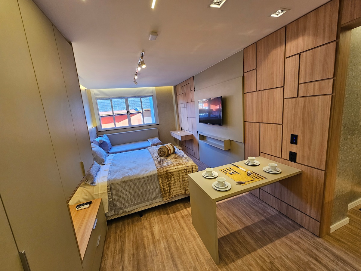 Disfruta de una experiencia increíble en este lugar bien ubicado. Tenga la facilidad de tener todo tipo de comercios que necesita a pocos pasos de casa. El apartamento está a 2 minutos a pie del centro comercial Teresópolis, el principal de la ciudad y de la calle de la fama. El apartamento está listo para recibirte a ti y a tu familia con toda la estructura de comodidad, seguridad y calidez. Cada detalle fue pensado para eso. Tenemos en el apartamento: - Wi-Fi de 600 MEGA - Smart TV 32" - Ropa de cama y toallas incluidas - Cocina compacta