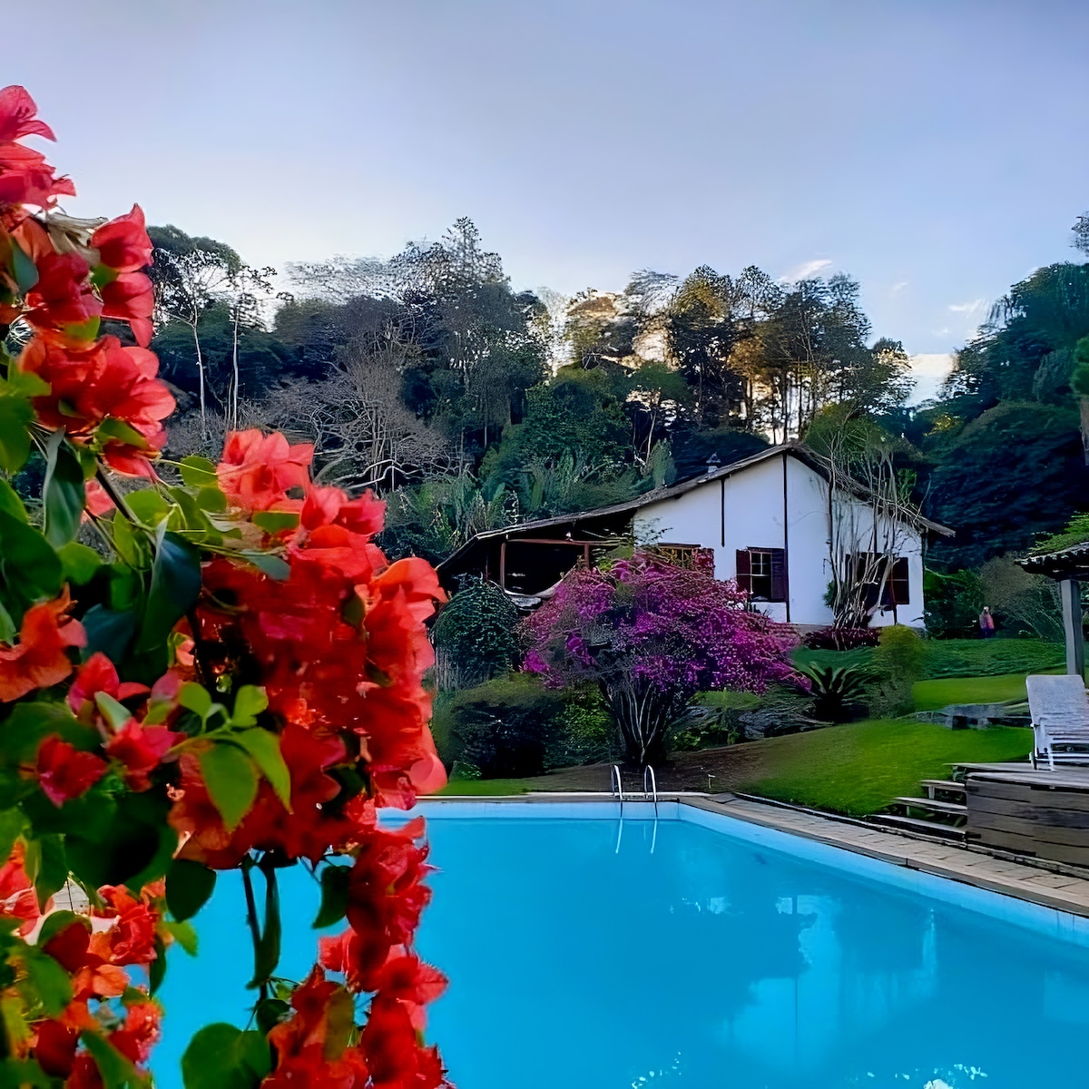 Tu casa en la sierra. Refugio ideal tanto para los calurosos días de verano, cuando las casas permanecen frescas, como para el invierno, donde la chimenea calienta y aporta aún más calidez. Situado en las inmediaciones del Parque Estadual dos Três Picos, en Teresópolis – RJ, el Sítio das Montanhas se encuentra a solo 15 minutos del centro de la ciudad. Casa independiente, plana, cocina lista para preparar sus comidas, como si estuviera en casa. Sitio con piscina, circuito para caminar, sendero en la montaña, hermosa vista