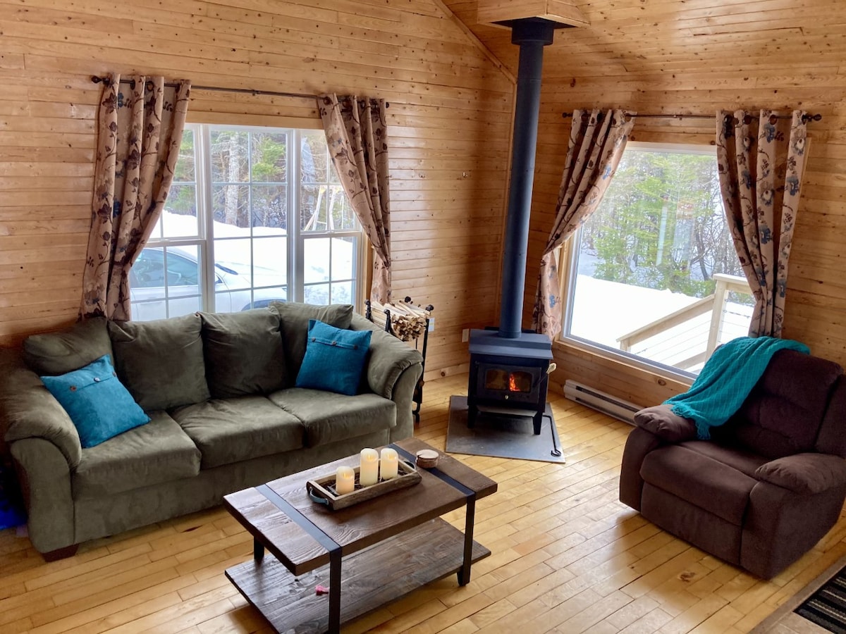 ¡Esta cabaña es una gran escapada para todo tipo de estancias y vacaciones en la ciudad de Terra Nova! Ofrece 3 dormitorios con un hermoso concepto abierto con wifi y TV. Baño grande completo que incluye lavadora y secadora. Hay un gran patio que incluye una barbacoa y una bañera de hidromasaje con una hermosa vista a la playa de arena y al estanque. Perfecta para actividades al aire libre en todas las estaciones o incluso para sentarse dentro de la cabaña con la estufa de leña o la vista al estanque a través de grandes ventanales.