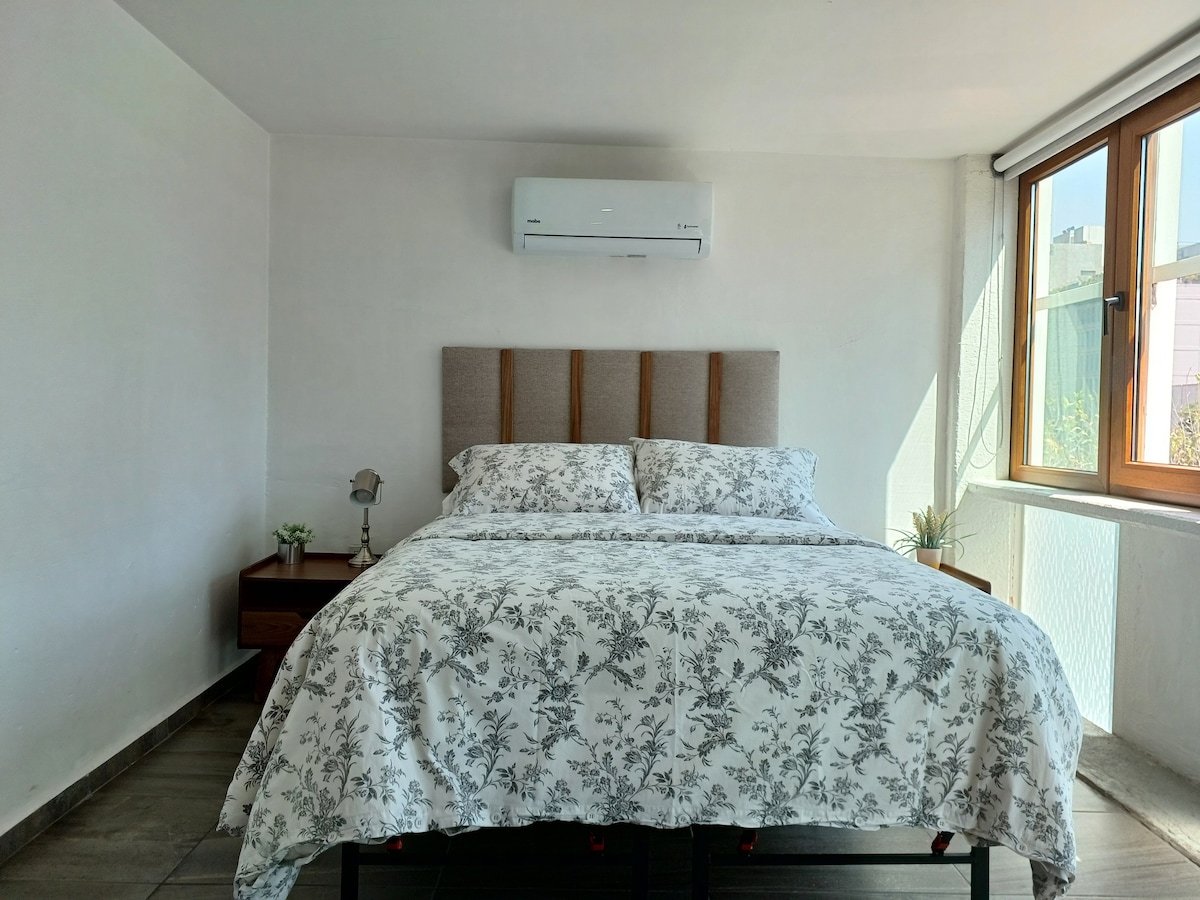 Acogedor y luminoso loft en Escandón con terraza privada rodeada de plantas. Ideal para relajarte, trabajar o disfrutar una escapada tranquila. Cama king size, cocina equipada, espacio de trabajo y hamaca interior, perfecta para leer o descansar. Ubicación segura y céntrica, a minutos de Condesa y Chapultepec. Acceso por escaleras a través de zonas comunes de nuestra casa. Privacidad, calidez y detalles pensados para que te sientas como en casa. ¡Te esperamos!