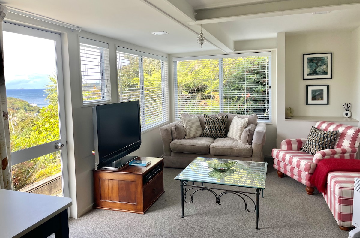 Apartamento estudio independiente con vistas panorámicas al mar. Espacio fresco y moderno que se adapta a tu necesidad de una estancia relajante. Wifi gratuito, Netflix, TV, baño, jardín nativo con tui y pájaros campanarios en la puerta. Cocina americana. Se proporcionan toallas y ropa de cama. Situado en Dunedin, a 8 minutos a pie de la playa de St Clair, piscina de agua salada, cafeterías y restaurantes. A 7 minutos en coche del centro de negocios y a 10 minutos en coche del estadio Forsyth Barr. Aparcamiento gratuito en la calle.