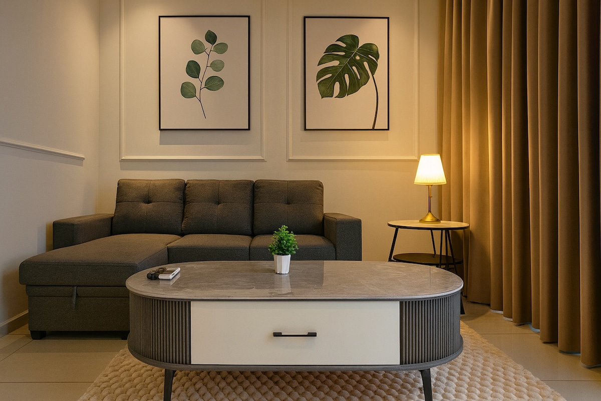 Este apartamento de 1 dormitorio cuenta con una vista impresionante del horizonte de KL. Cuenta con un salón con sofá de 3 plazas, mesa de comedor, cocina, escritorio y un gran balcón frente a la Torre KL y las Torres Petronas. Viene con TV de 55 pulgadas, wifi de alta velocidad y una cama tamaño queen en la que puedes acomodarte cómodamente. *La otra unidad de este apartamento de llave doble es un estudio compacto con cama tamaño queen, despensa, baño y bañera. Pueden caber amigos que viajan contigo con privacidad. ¡Te invitamos a solicitar más información!