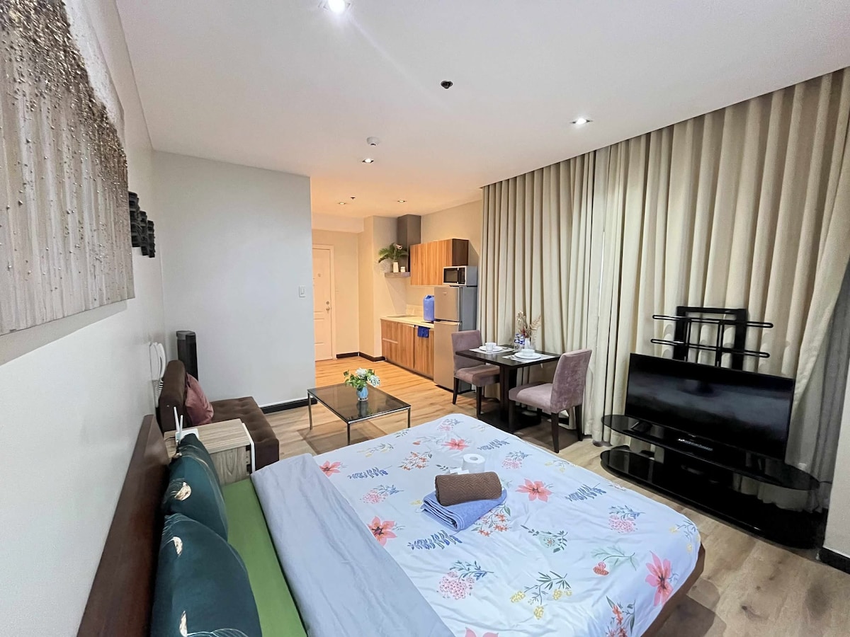 Brand New Oversized Studio Unit at the Spire! 2 Queen-sized beds perfect for families and groups! Get your much needed travel break in this unit with our huge 55" Smart TV with Netflix, fast 100Mbps WiFi, cold aircon and washing machine in the unit! Century mall and parking is just next door and the Poblacion entertainment area is just outside our doors!
