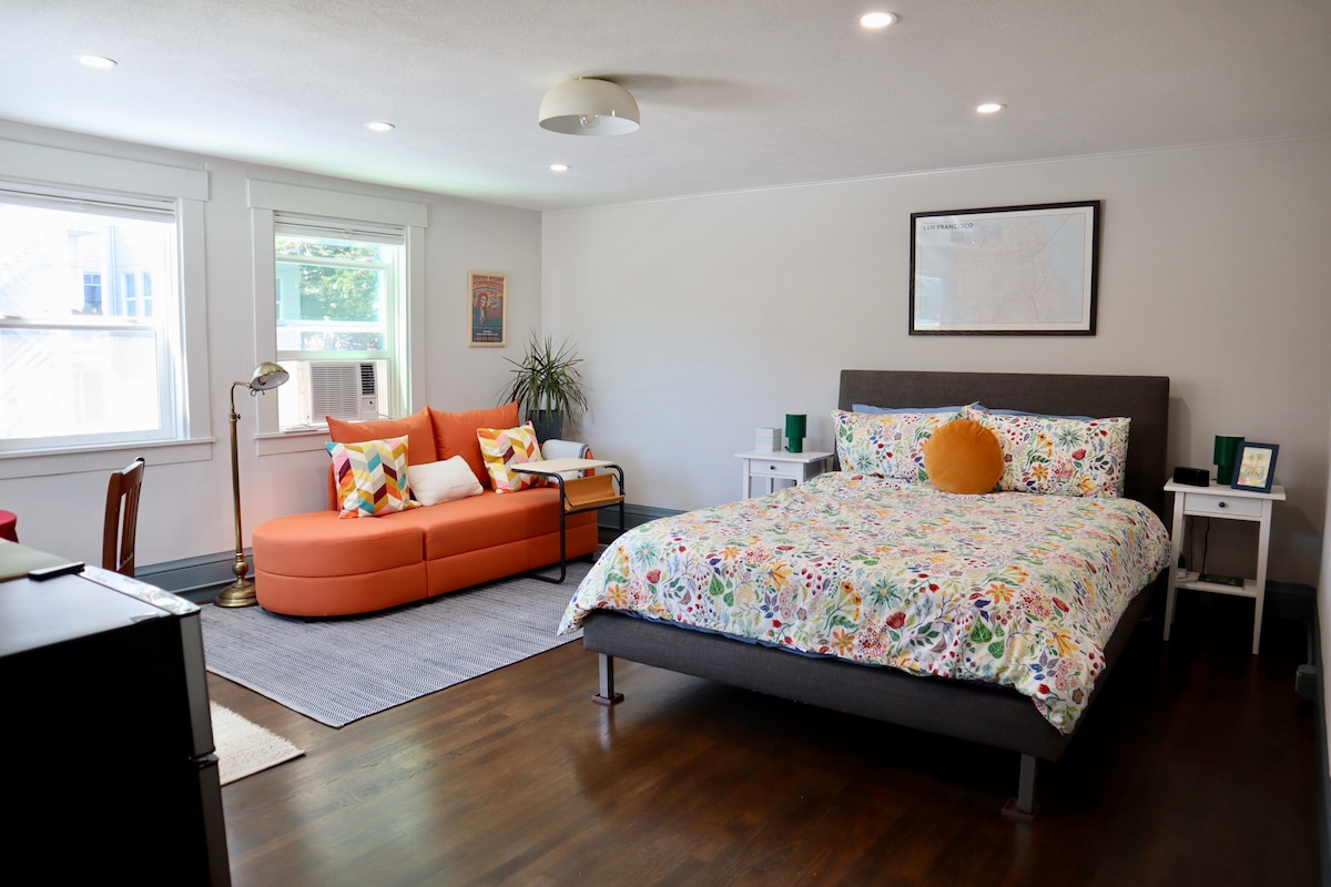 Este elegante estudio es la estadía perfecta para viajes de ocio y trabajo. En 600 pies cuadrados llenos de bondad, encontrarás toneladas de luz natural, una cocina totalmente surtida, cama tamaño king, espacio de trabajo dedicado, comedor y prácticamente la mejor ubicación para visitar San Francisco. Hay muchos restaurantes, bares y parques a poca distancia. Con una ubicación céntrica con toneladas de transporte público y fácil acceso al centro de la ciudad, Northbeach, SOMA y todos los lugares de interés turístico. Anfitrión en el sitio en el piso de abajo. Estacionamiento gratuito