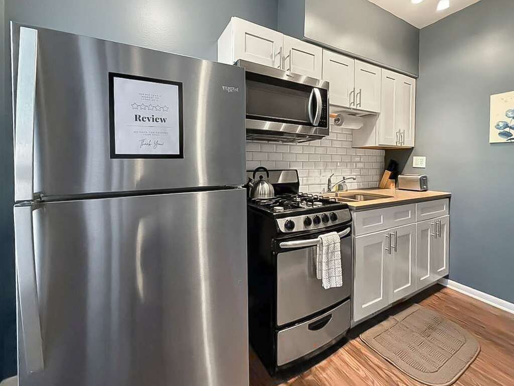 Disfruta de Hyde Park viviendo en este luminoso y recién renovado estudio de 400 pies cuadrados con una acogedora cama tamaño queen, TV Roku de 65", cocina completa con elementos básicos y baño privado. A poca distancia de la Universidad de Chicago, el Museo de Ciencia e Industria y los cafés, tiendas y restaurantes de la calle 53. Con fácil acceso a Metra, autobuses CTA y la pintoresca orilla del lago, este encantador espacio es perfecto para la comodidad, la conveniencia y una verdadera experiencia en Chicago.