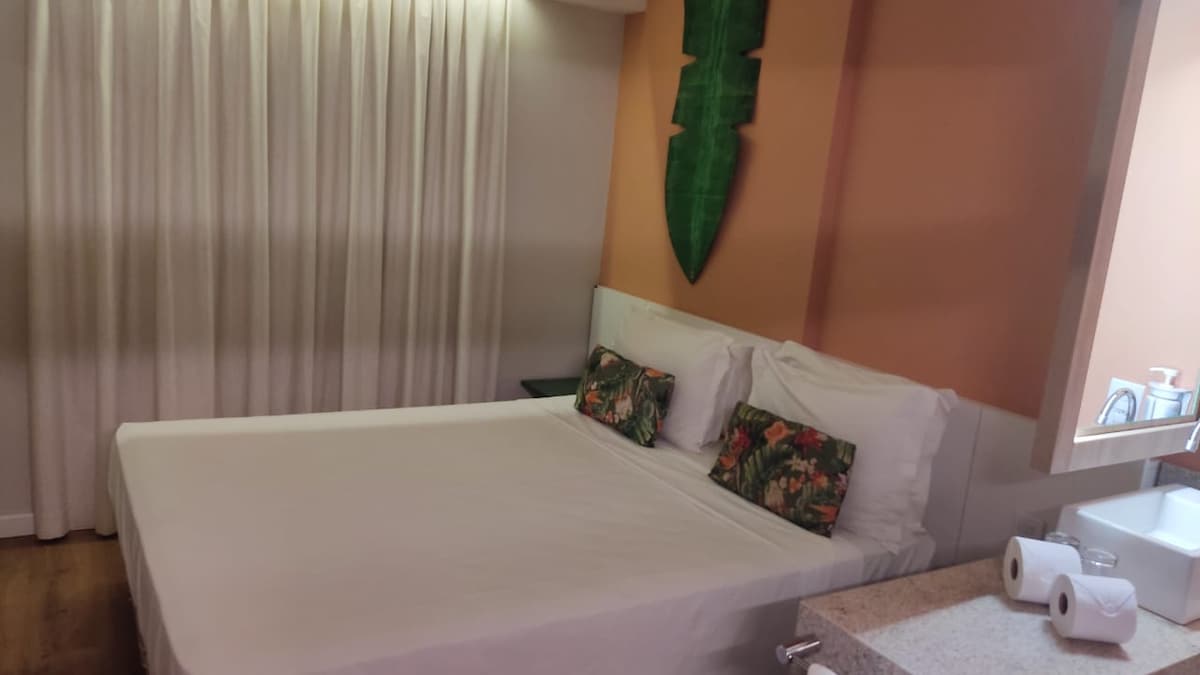 Frente a las Termas de Olimpia, cerca de supermercados, restaurantes, pizzerías, farmacias y otros servicios. El apartamento tiene 1 dormitorio con capacidad para 6 (seis) personas, y consta de 1 dormitorio con 1 cama doble y 1 cama individual, sala de estar con sofá cama y smart tv, baño, balcón, aire acondicionado en todas las habitaciones, cocina americana con fregadero, minibar y microondas