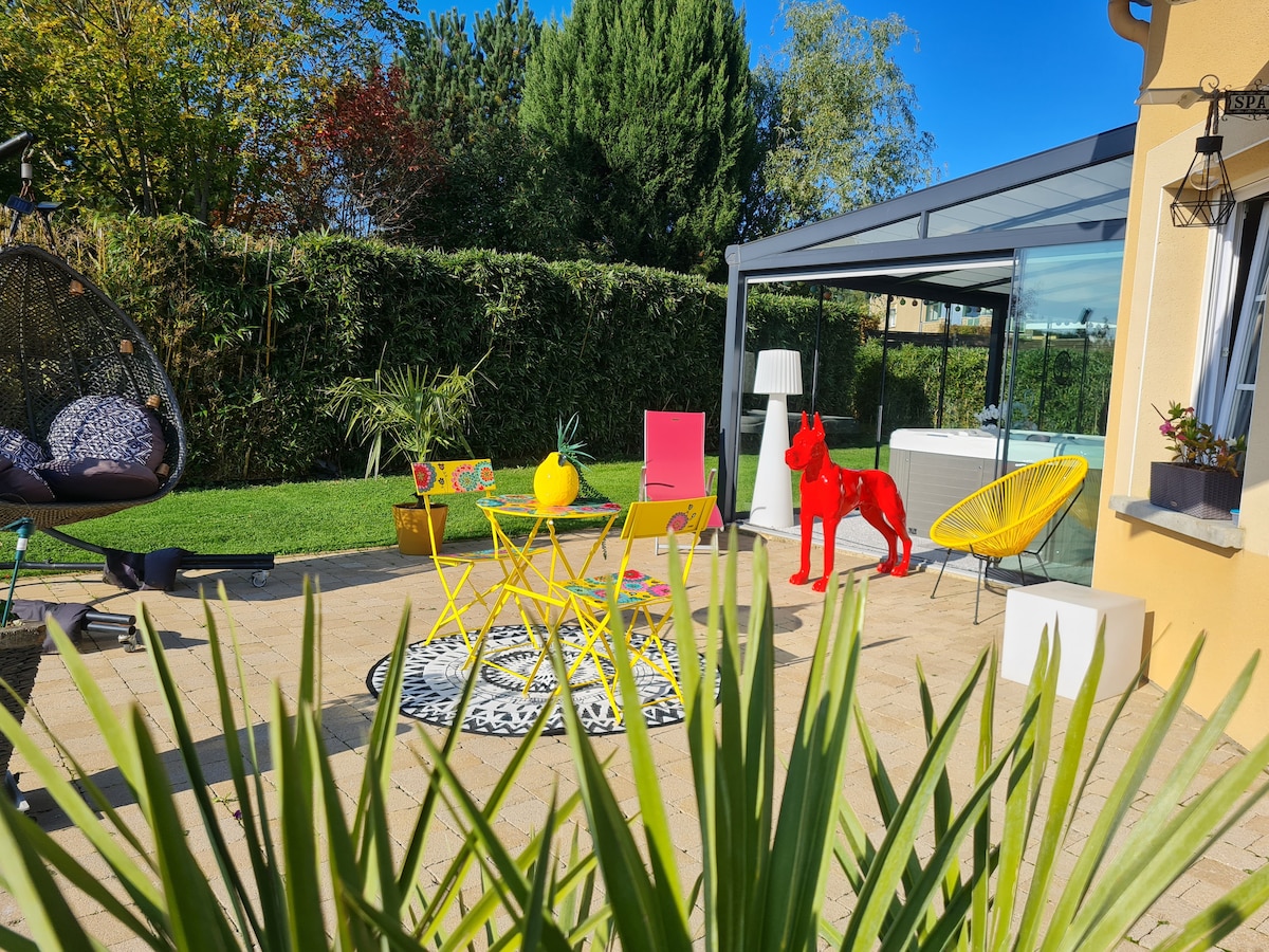 New espace jacuzzi !!! Amusez-vous avec toute la famille dans ce logement chic pouvant accueillir 7 personnes. Composé de 4 chambres, 2 salles de bain au départ de nombreuses promenades. Grand extérieur avec balançoire et toboggans. Pièce dédiée au kicker. Nombreuses terrasses avec mobilier de jardin pour profiter des longues soirées d'été, jacuzzi avec luminothérapie, barbecue, .. bref un endroit accueillant pour toute la famille!
