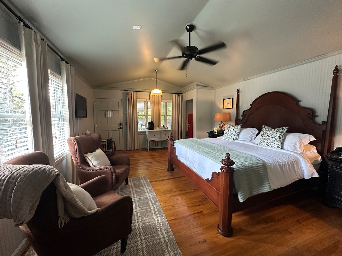 Bienvenido a The Paxton House. Nuestra cabaña Hansell One es una de las favoritas con su porche delantero privado y mecedoras. Una cómoda cama tamaño king y un baño completo te estarán esperando cuando regreses. A pocos pasos del centro de Thomasville y de todas las tiendas, restaurantes y bares que ofrece. ¡Baja un poco el ritmo y disfruta de una estancia en esta adorable casa de campo privada! ¡Echa un vistazo a las muchas otras opciones que tenemos para ofrecer en The Paxton House!