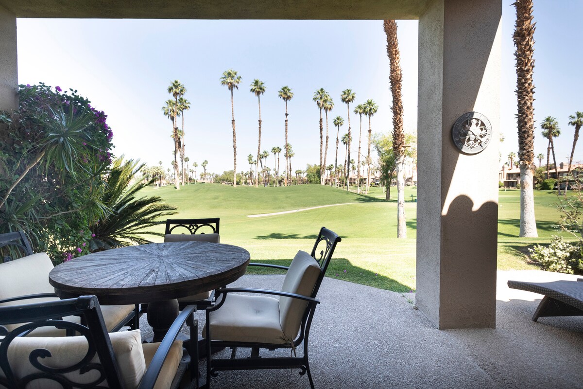 Relax and unwind at this peaceful and centrally-located fully stocked Condo located in the Palm Desert Resort Country Club; a 24 hour security gated community. Single level unit in the "Resorter, AKA." World class pickball and tennis courts. On the 10th fairway of the golf course! Amazing views of the sunset, mountains, golf course and clubhouse. 20 swimming pools and spas on property. Our guests have access to all amenities including Golf, Tennis, Pickleball, Clubhouse and restaurants.