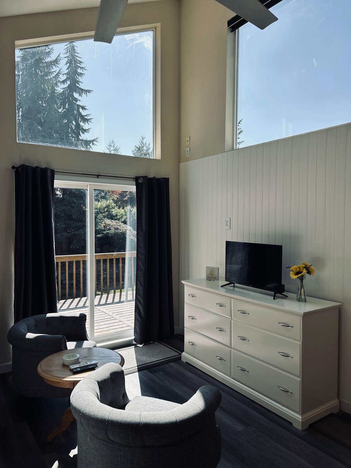 Desconecta de la rutina en este alojamiento único y relajante. Enclave privado en un entorno tranquilo y parecido a un parque que se siente como si estuvieras en el bosque, pero aún así cerca del campus del Capitolio, el centro de la ciudad y los servicios de West Olympia. Apartamento estudio en el sótano con luz natural, entrada privada, estacionamiento fuera de la calle y cocina americana surtida. Situado a pocos pasos de la cooperativa de alimentos del lado oeste, a una manzana de la parada de autobús y del sendero natural que conduce al paseo marítimo y al centro de Olympia.