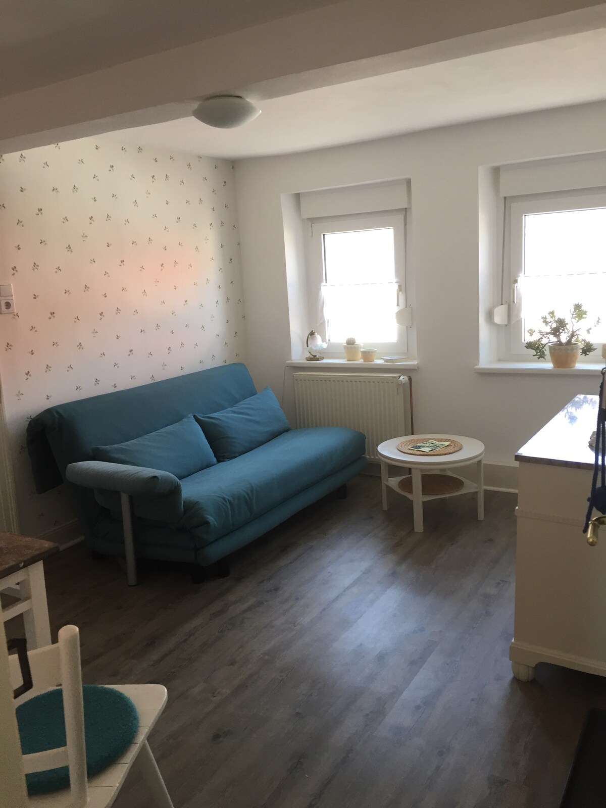 El apartamento de Hanni es uno de los dos alojamientos reformados con mucho cariño. Reformado energéticamente según los últimos estándares. Situado justo a las afueras del pueblo. ¡Eso promete paz y tranquilidad! El uso de la sauna es posible por una tarifa adicional. El estilo de decoración es una mezcla de muebles nuevos y vintage. La sala de estar está equipada con una pequeña cocina integrada, mesa de comedor y un sofá cama. El baño con ducha/inodoro/lavabo. Dormitorio con armario. Plazas de aparcamiento disponibles en el patio interior.
