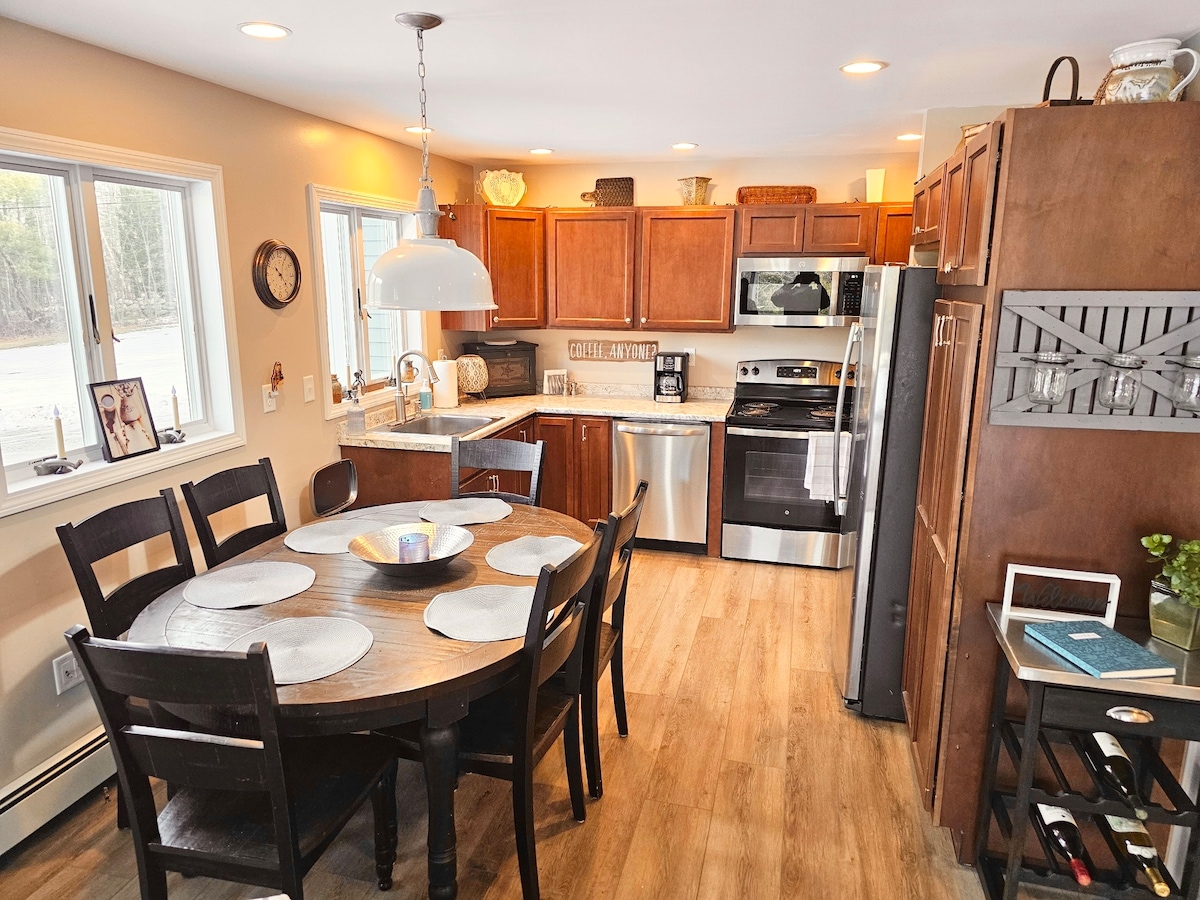 Welcome to our charming loft in a peaceful neighborhood, ideal for comfort and convenience. This well-maintained property provides a cozy living space. The loft features a kitchenette, a beautiful stone fireplace and a big, comfy reclining couch. Visit Bridgton this summer walking distance highland lake, shops, and restaurants. Just minutes from Pleasant Mountain for hiking, skiing, 30 minutes from North Conway, and an hour from Portland a perfect central location to relax after exploring.