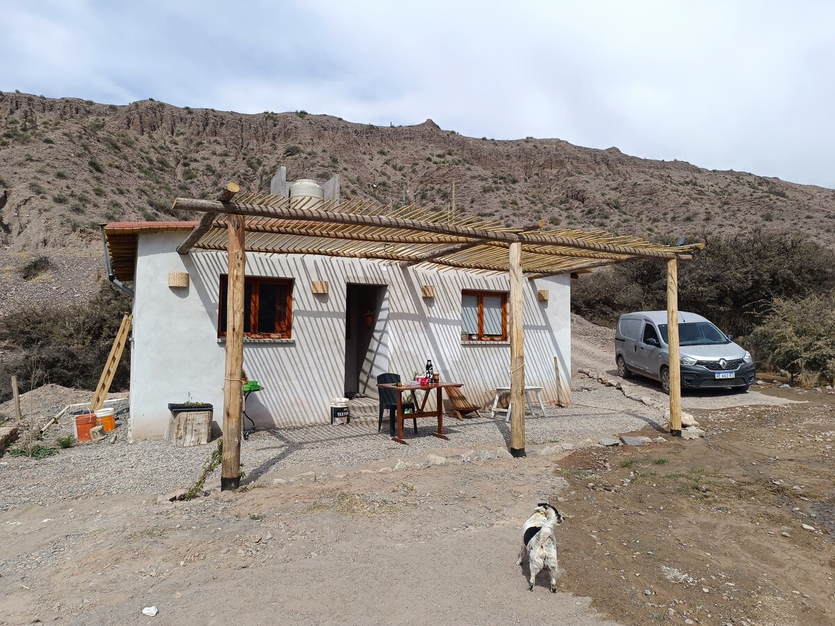 Rancho para 2 personas en un predio de 4000 mts cuadrados, con una increíble vista de las montañas de la Paleta del Pintor, en medio de un campo de cultivos y corral de llamas, construidos con un estilo andino, con materiales locales como adobe, caña y piedra, calefón solar y uso eficiente del agua.