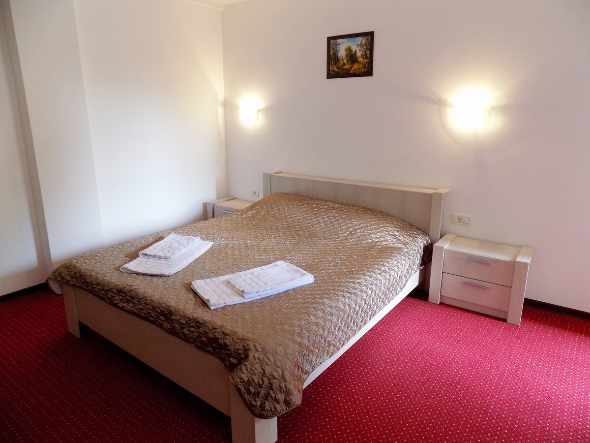 ¡Te damos la bienvenida a nuestra encantadora casa de huéspedes en Dambovita! Situado en una calle serena, ofrecemos fácil acceso al centro comercial Shopping City Mall, al mercadillo más grande de la ciudad los fines de semana y al restaurante Nora, todo a 5 minutos a pie. El transporte público está convenientemente cerca, conectándote con el vibrante pulso de la ciudad. Disfruta de una estancia tranquila con una gran terraza y aparcamiento gratuito. Trabaja sin problemas con nuestro espacio de trabajo dedicado. ¡Reserva ahora para disfrutar de una deliciosa mezcla de comodidad y tranquilidad en Dambovita!