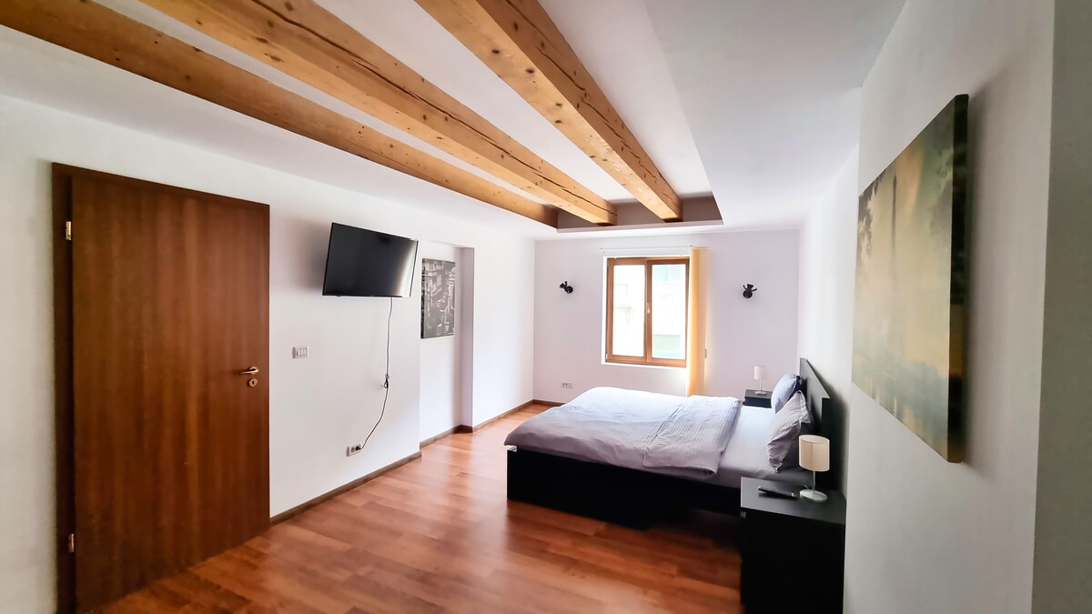Stay in a piece of history! This spacious, fully renovated apartment is located in Timisoara's oldest hotel, built in 1752. Emperors Joseph II and Francis I of Austria, as well as Alexandru Ioan Cuza, the first ruler of the Romanian Kingdoms, once stayed in this very building. Now a modern, fully equipped space for 2 to 4 guests, it combines historic charm with contemporary comfort. Located in the heart of the Old Town, you'll be surrounded by cafes, restaurants, and iconic landmarks.