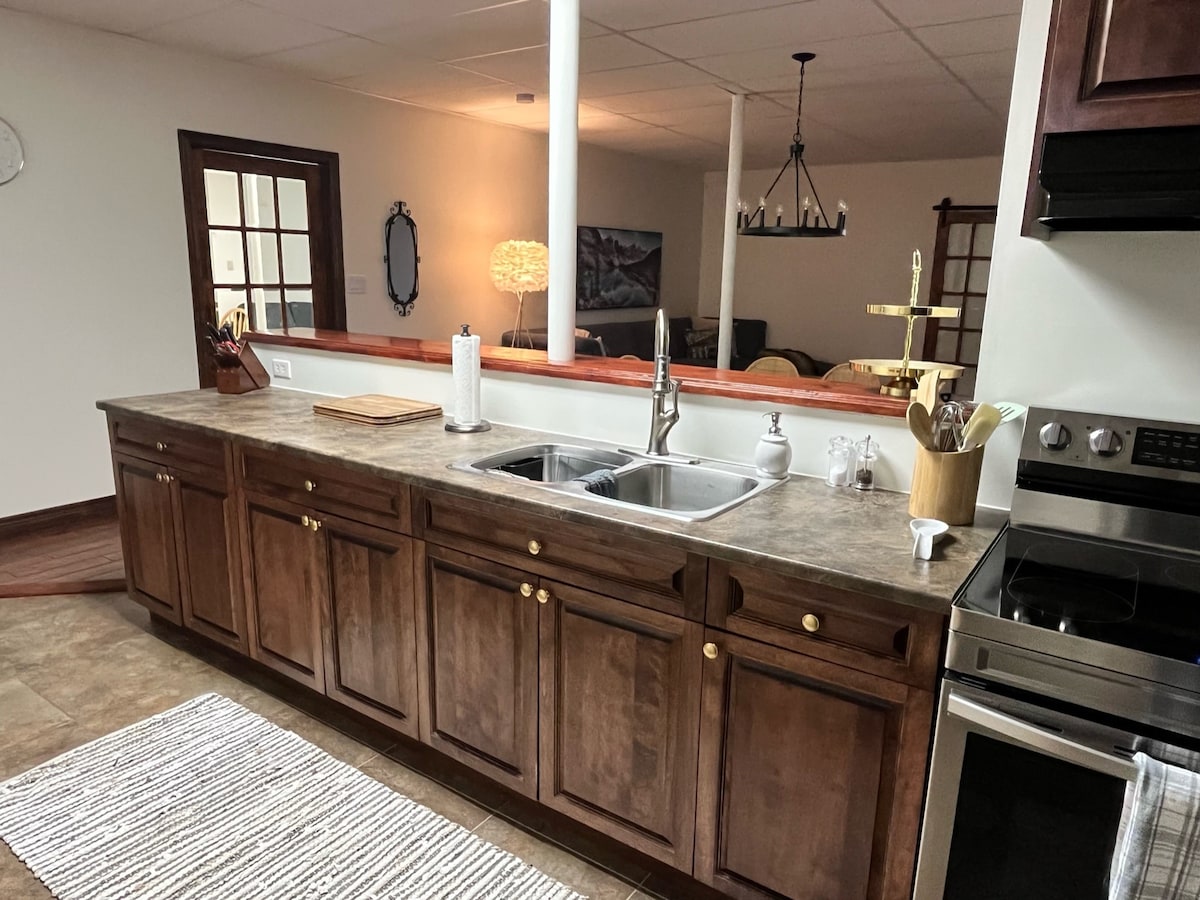 This 2 bedroom home is set up to be a home away from home whether you're on a work trip or a personal vacation. It is close to restaurants, fast food, grocery stores and other stores and close to a very popular walking trail. The fire pit and backyard patio are buried under snow in the winter months. The listing says not suitable for infants and children because there’s stairs but children are welcome.