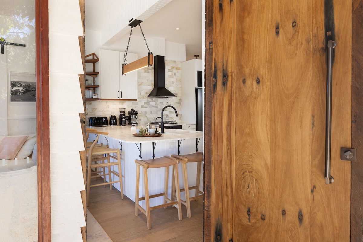 Dark Horse provides stylish self-contained villa accommodation near forest and beaches on the stunning Barrington Coast, NSW. Set on our 10 acre farm on the site of an old dairy, we've built a unique one bedroom retreat including some of the original timbers to create an airy open plan space opening onto views of the small valley and paddocks, picking up the sea breezes. We're located just 8kms north of Nabiac on the Mid North Coast, just off the Pacific Highway. Forster is a 10 min drive.