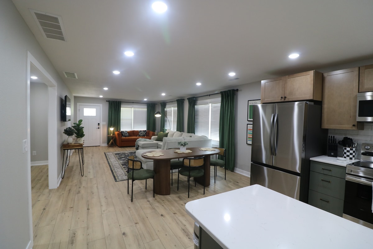 Unwind at Hillsdale Haven! Newly updated, this sunny home boasts multiple gathering spaces and is fully equipped for that "home away from home" feeling. Relax with your coffee in the sunroom or cozy up in the basement for a movie and games. Located on the west side of town, walking distance to Memorial Park. Easy access to the Capitol, Downtown, the Katy Trail and other attractions. Perfect for families, Katy Trail bikers, legislators, traveling nurses or anyone looking for a getaway.