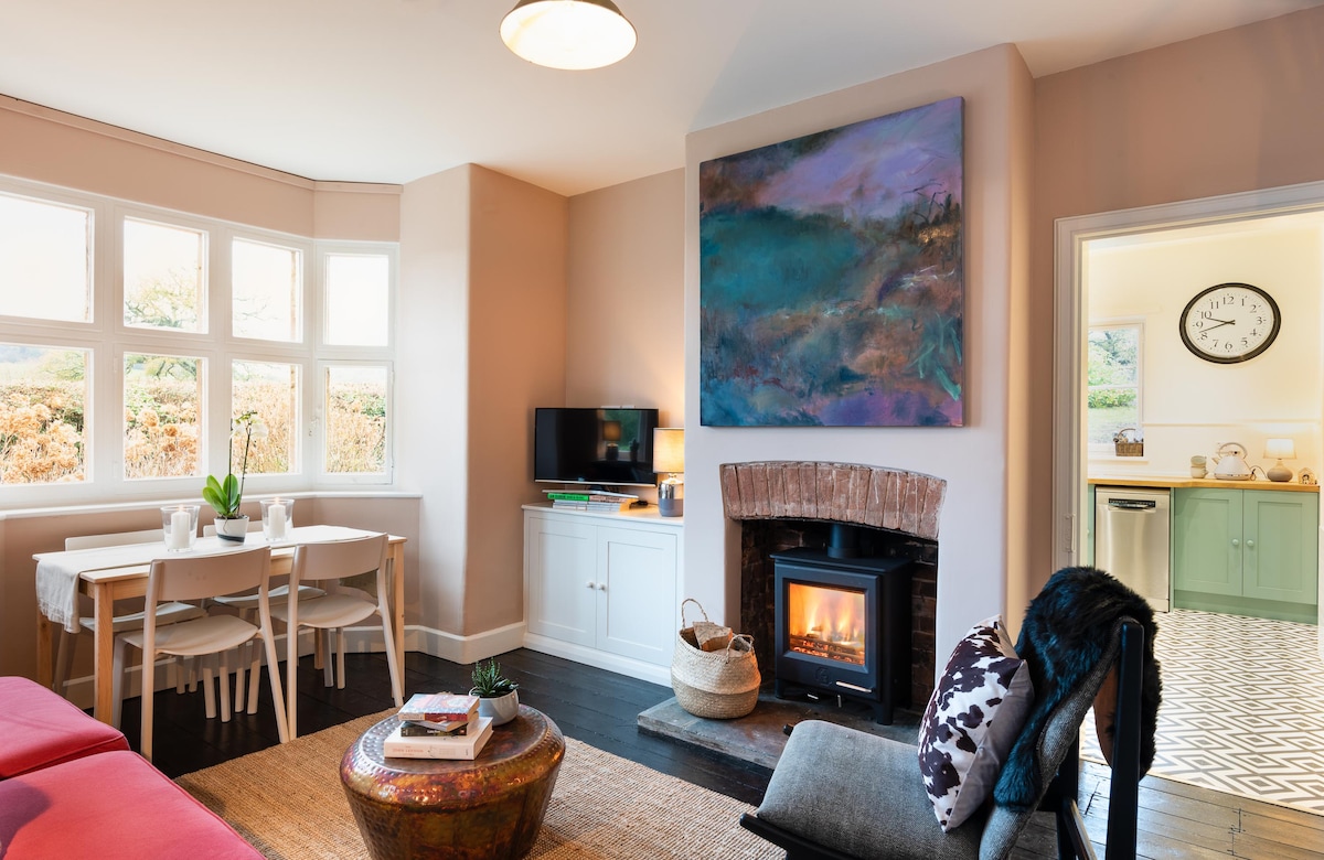 Relájate en una acogedora casa de huéspedes, bellamente renovada, situada en los tranquilos terrenos de una casa de paja del siglo XVII, en el corazón del encantador pueblo sajón de Sidbury. Este refugio independiente es perfecto para pasear por el campo, explorar la cercana Sidmouth o disfrutar del sendero de la costa suroeste a pocos minutos. Con unas vistas inigualables, un jardín privado y un interior cálido y elegante, es el lugar ideal para relajarse y disfrutar de la tranquilidad de la zona rural de Devon.