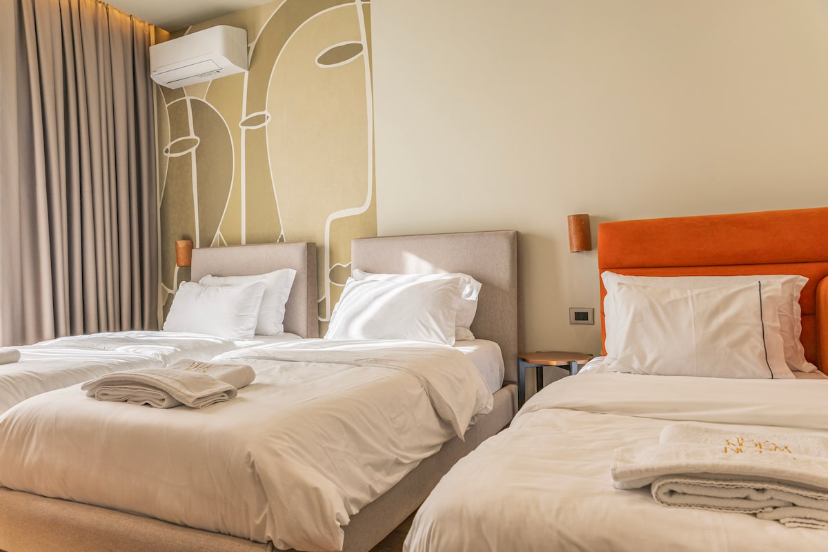Stay in a chic boutique room in Blloku, Tirana’s vibrant center. Enjoy premium linens for ultimate comfort and complimentary coffee, tea, and bottled water. The room features fast Wi-Fi, a smart TV, and all essentials for a comfortable stay. Self-check-in makes your arrival hassle-free. Surrounded by trendy cafes, restaurants, and nightlife, you’ll experience the best of the city. Whether for business or leisure, this stylish space offers everything you need for a perfect stay.