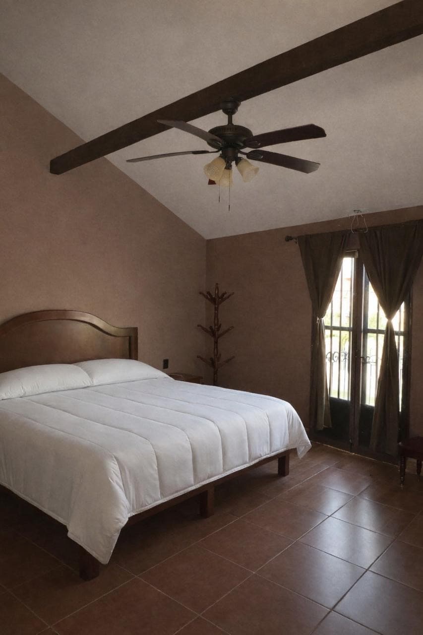 Casa estilo Rustico remodelada de acuerdo a las normas de la UNESCO para poblaciones que son patrimonio cultural de la humanidad. techo de teja,puertas y ventanas de madera,mosquiteros y puertas y ventanas ventiladores de techo con patio interior con plantas y casa adornada estilo mexicano casa muy acojedora ideal para descanso !